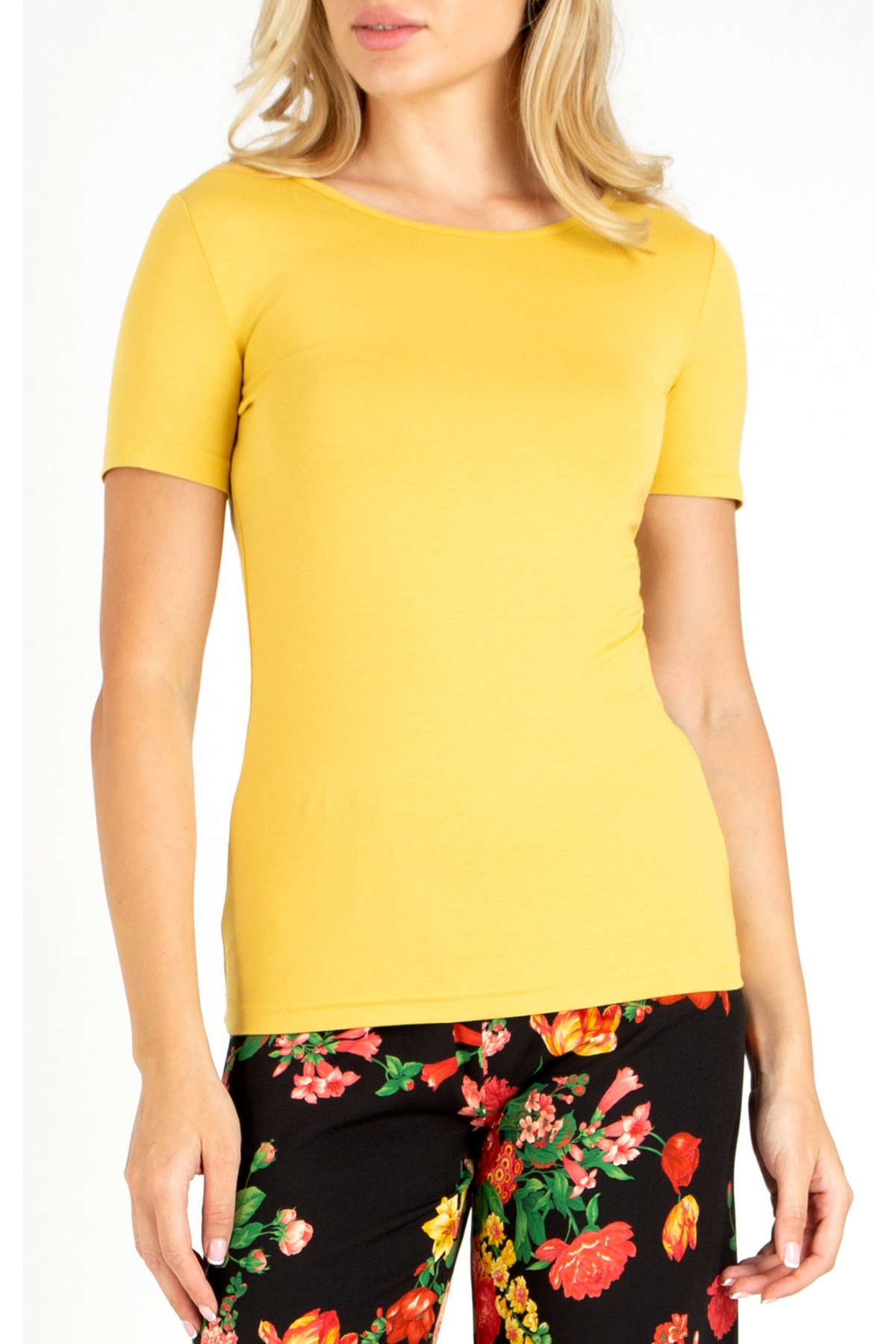 Bluză cambrată cu mânecă scurtă din tricot, în culoarea Misted Yellow. Modelul are siluetă cambrată, decolteu tip bărcuță fin și mânecă scurtă, realizată din tricot elastic pentru un plus de confort. Se combină ușor cu fuste și pantaloni din colecția Daphne. Alegeți această nuanță fresh pentru a vă simți confortabil atât la birou, cât și în timpul liber. Disponibilă în mărimi 36 (S) – 46 (2XL).