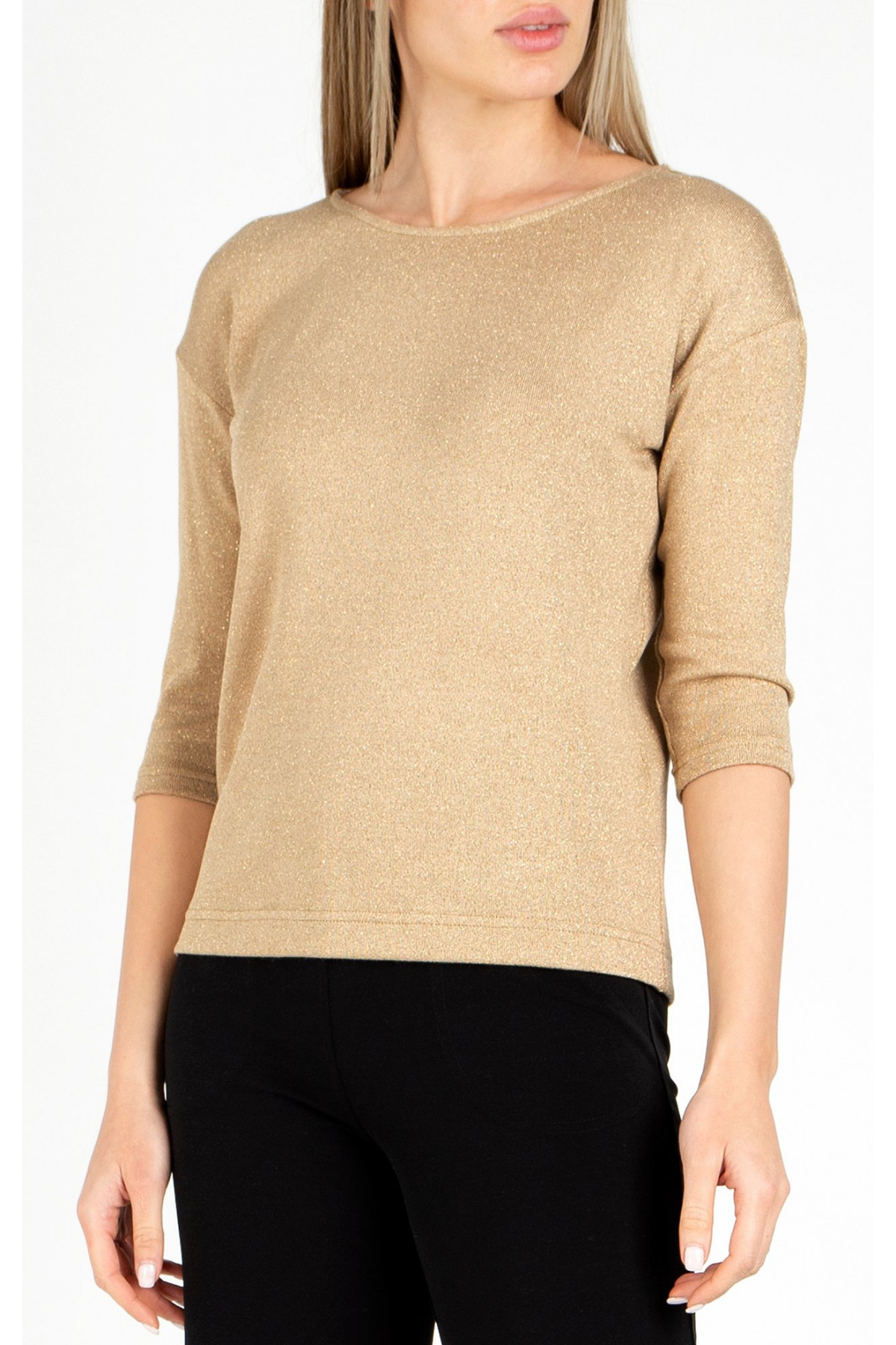 Bluză într-o siluetă lejeră de culoare Red Mahogany cu luciu auriu