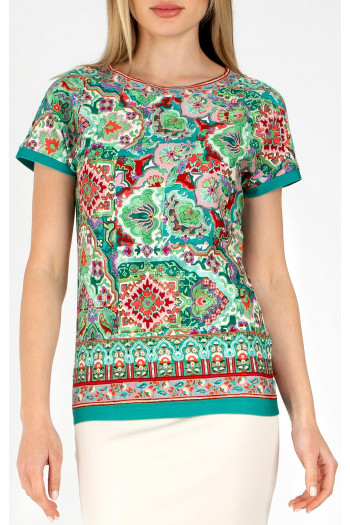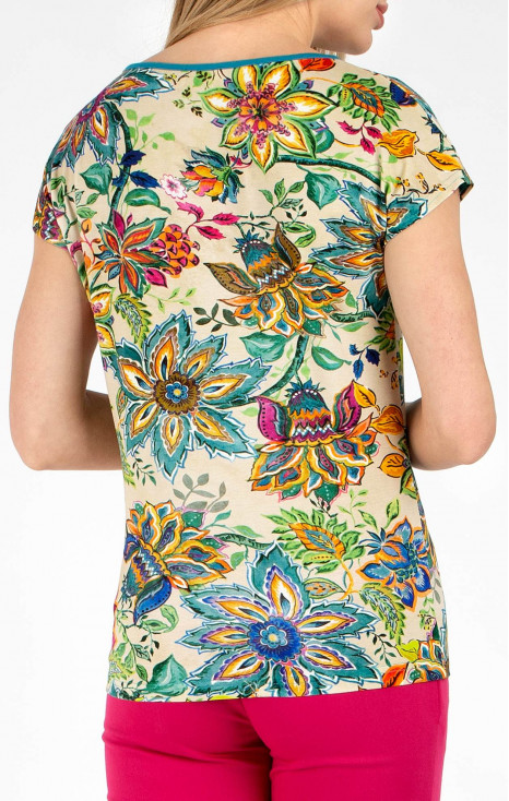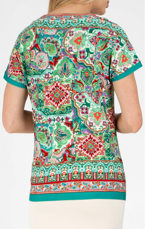 Bluză cu siluetă lejeră, din tricot moale de culoare Amethyst cu imprimeu grafic. Modelul bluzei are partea de sus lejeră, și ușor ajustată în partea de jos, cu mânecă lungă și decolteu tip barcă. Aceasta este confecționată dintr-un material moale și elastic, potrivită pentru purtare în zilele reci de iarnă Imprimeul botanic elegant in mov conferă o autenticitate unică aspectului.