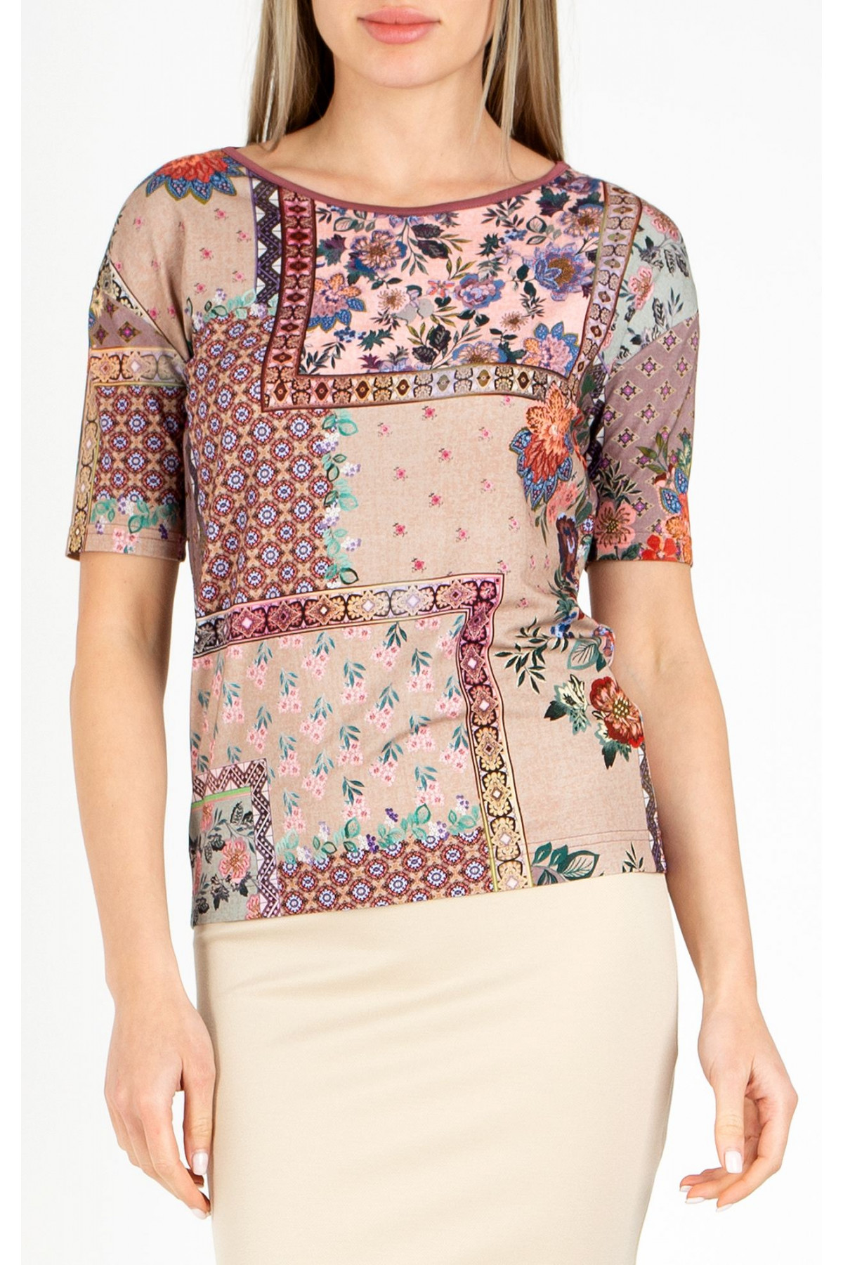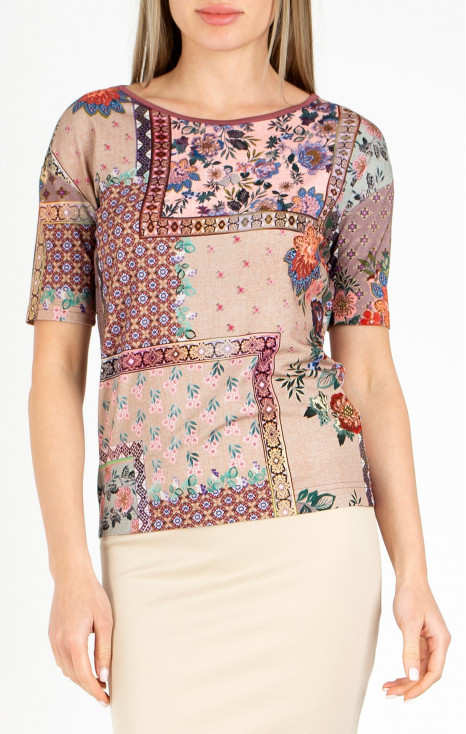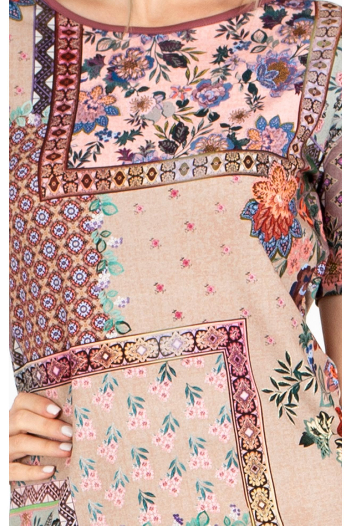 Bluză din tricot ușor cu imprimeu patchwork de culoare Nostalgia Rose