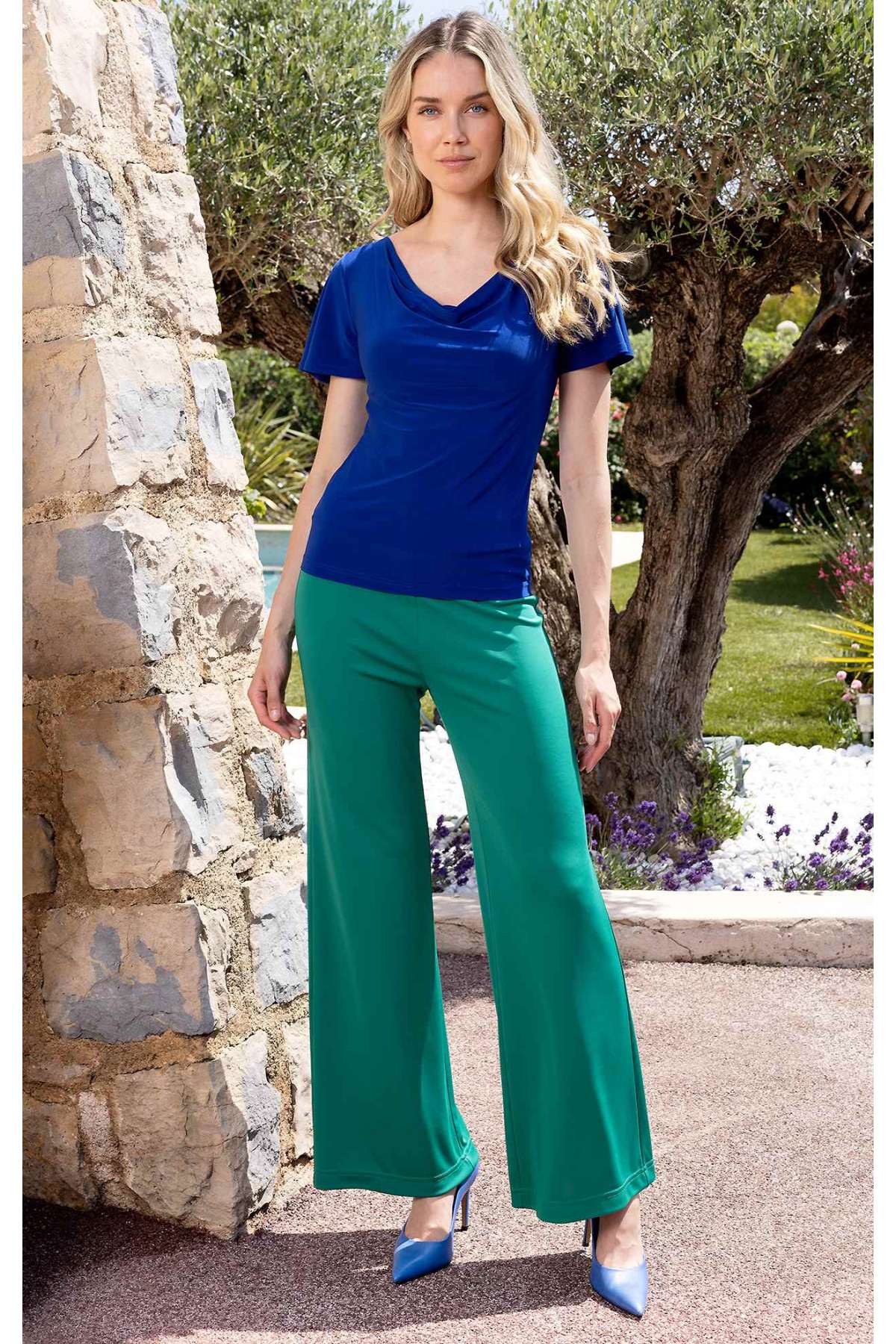 Bluză elegantă cu decolteu drapat și mânecă scurtă de culoare Ultamarine