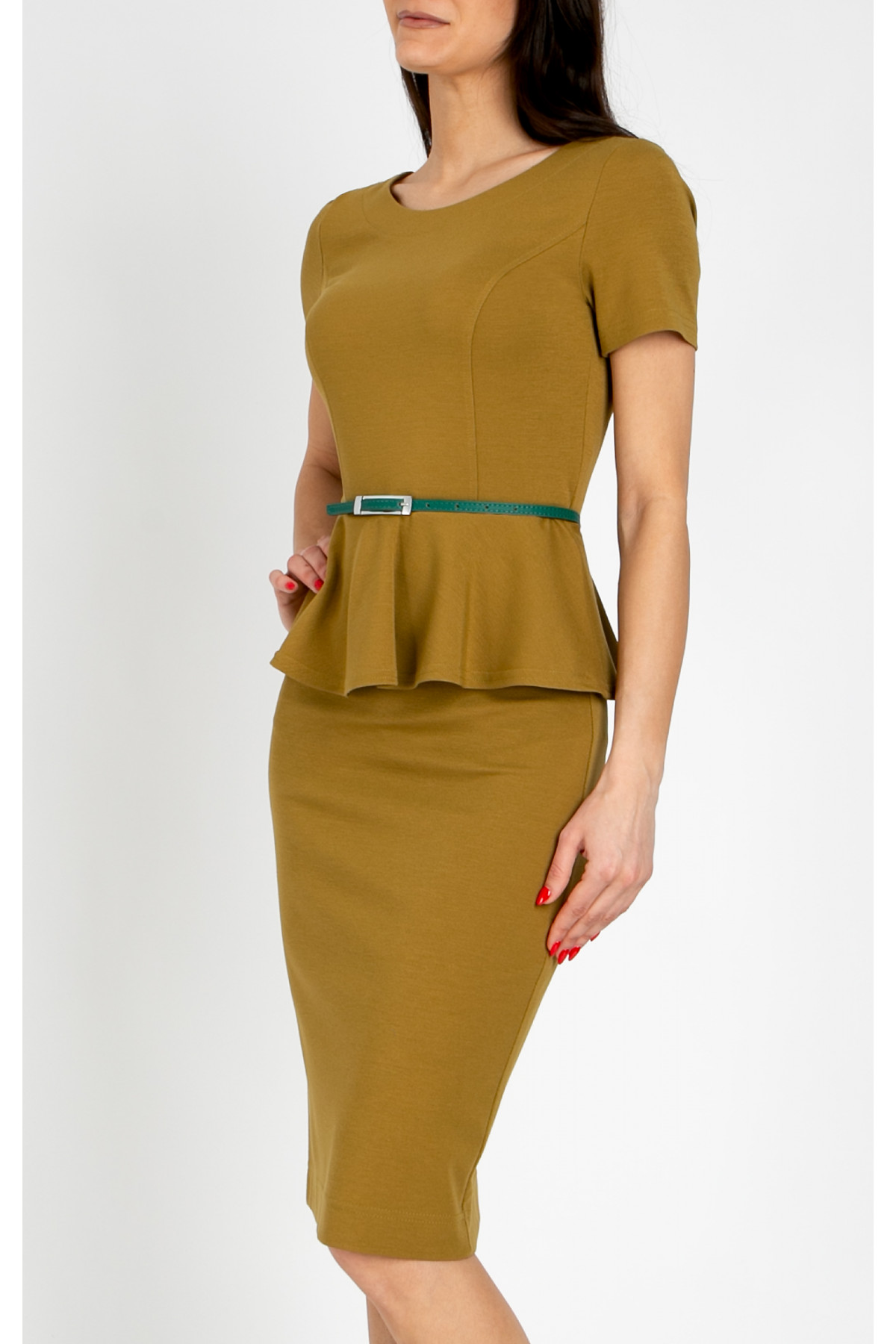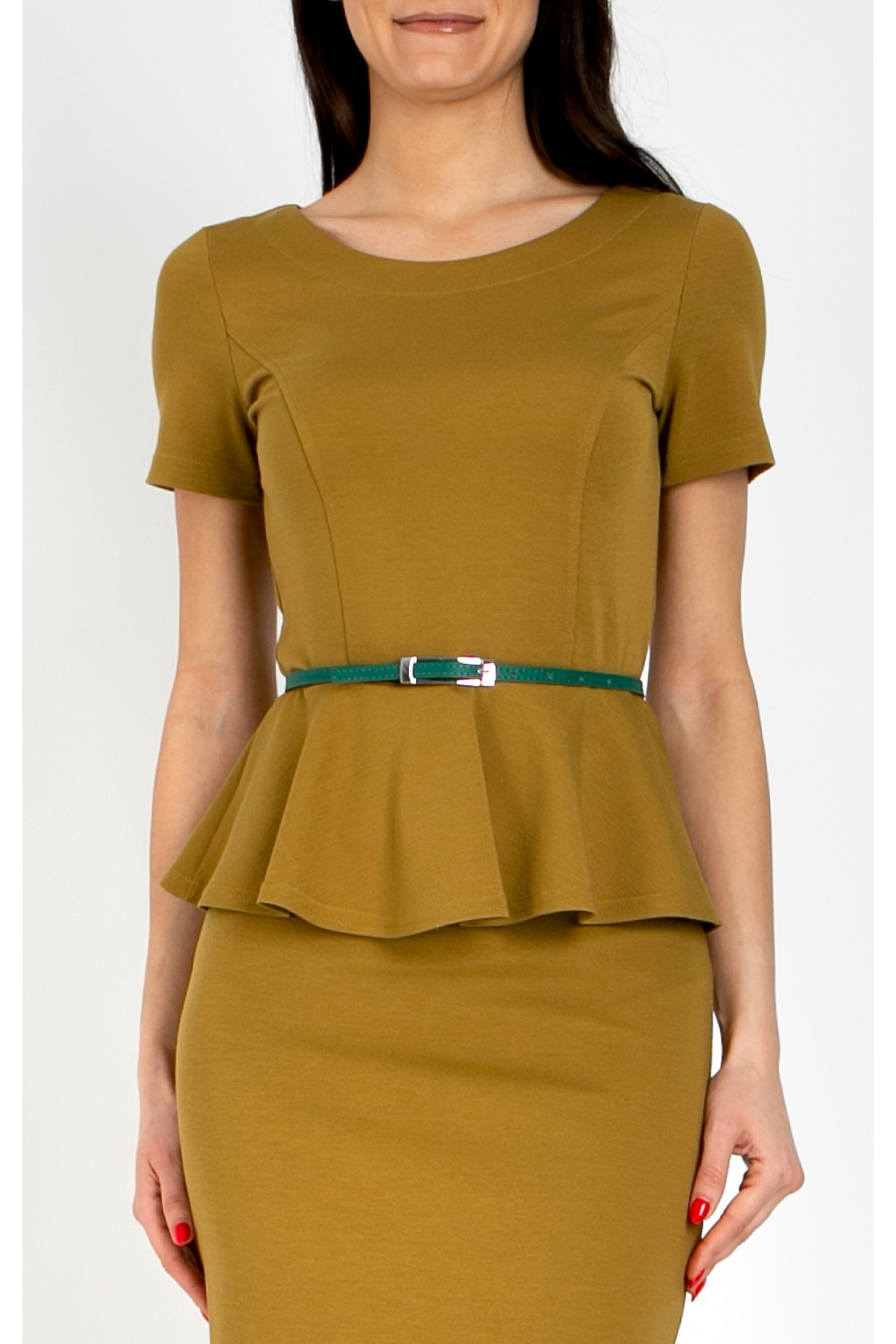 Bluză elegantă cu peplum și mânecă scurtă din tricot ferm în culoarea Bronze Mist. Această bluză rafinată îmbină un aspect modern cu șic clasic. Confecționată dintr-un tricot de înaltă calitate, se remarcă prin silueta cambrată și volanul spectaculos din talie (peplum), care creează proporții armonioase și feminine. Nuanța modernă evidențiază individualitatea, iar decolteul rotund închis și mâneca scurtă o fac alegerea ideală pentru garderoba office. Combinați-o cu o fustă în aceeași nuanță pentru un outfit complet și evidențiați talia cu o curea din piele din colecția Daphne. Modelul este potrivit atât pentru birou, cât și pentru ocazii elegante de zi cu zi.