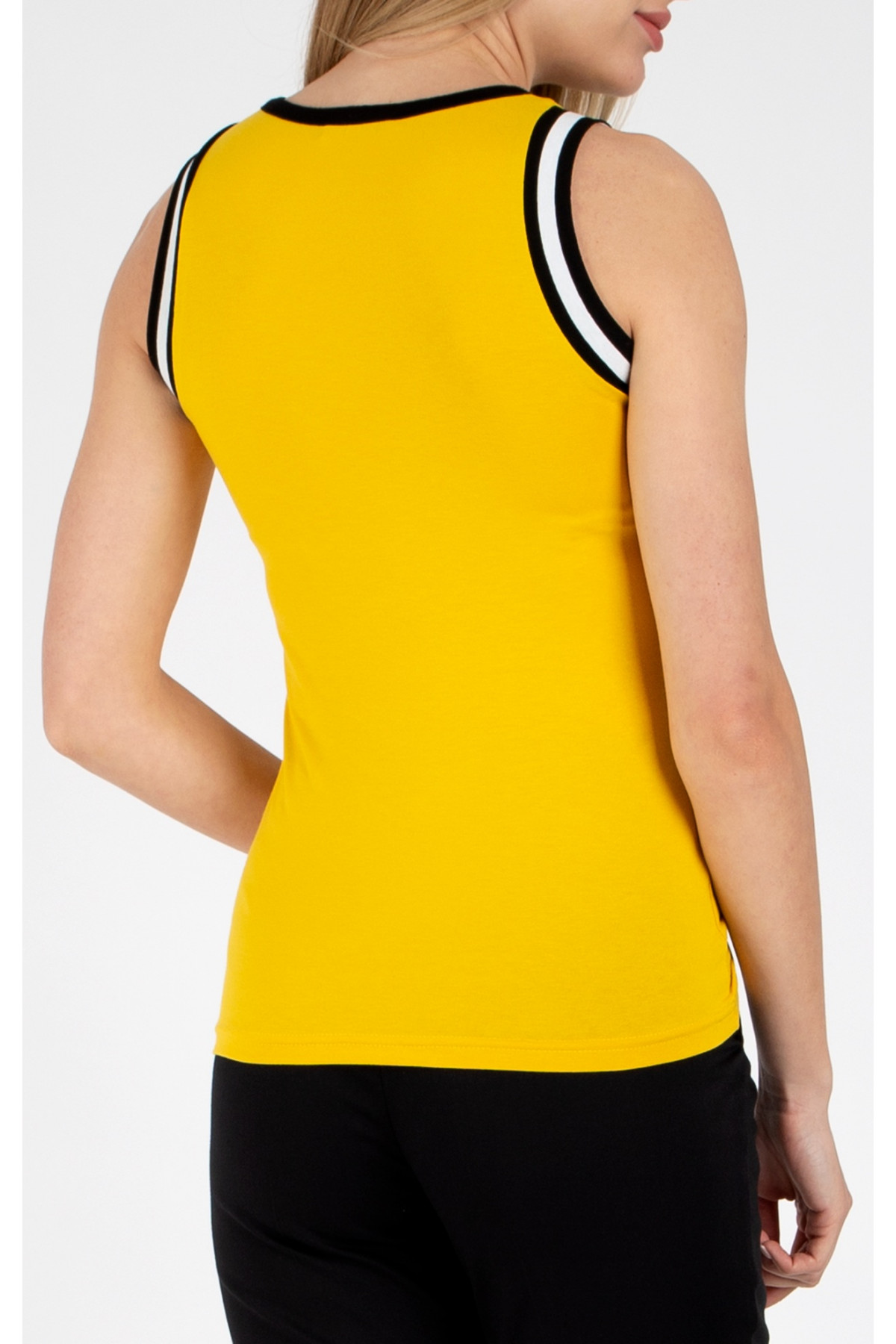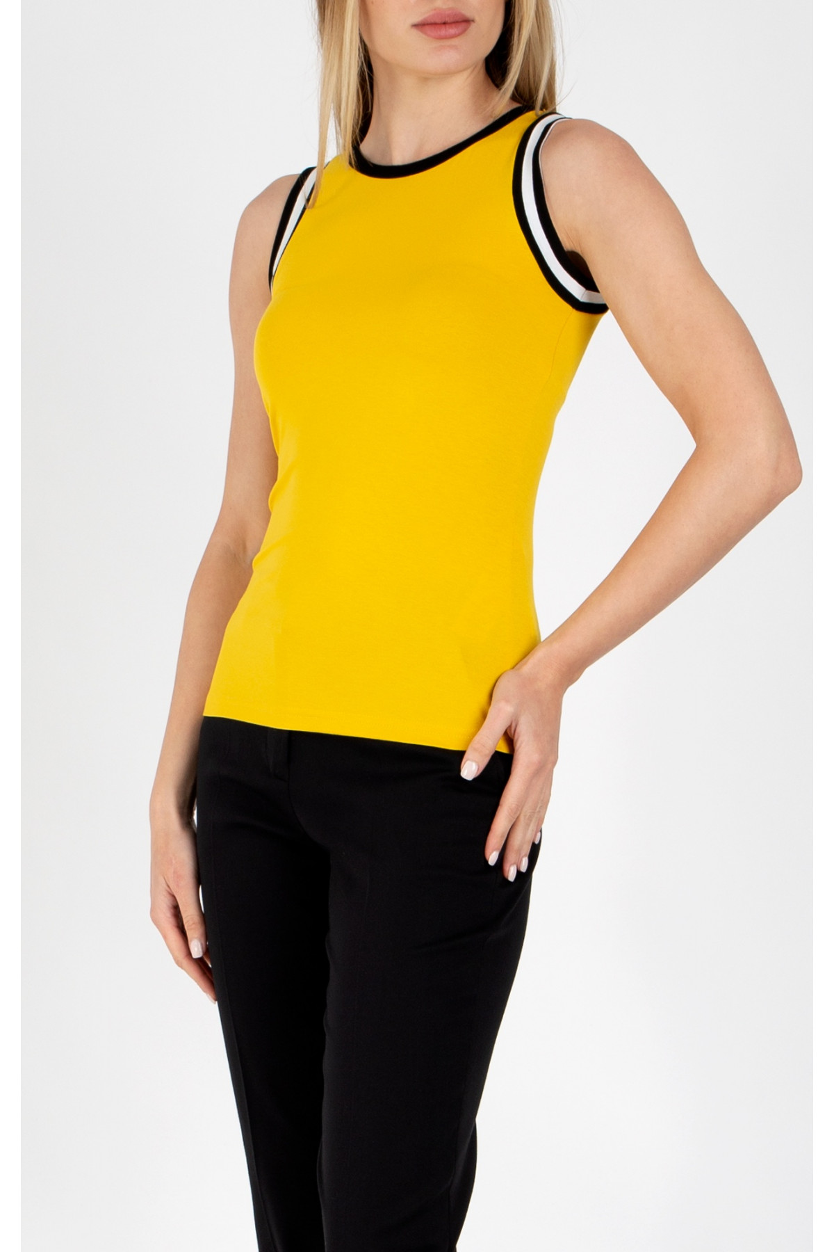 Bluză mulată fără mâneci de culoare galben Mimosa și bordură contrastantă