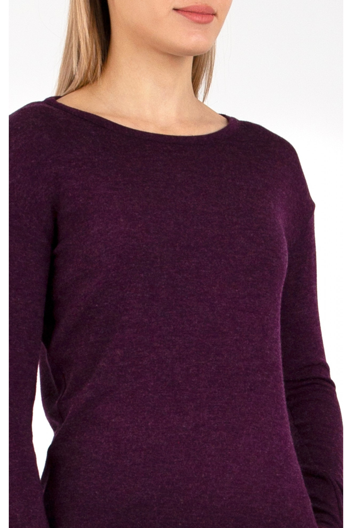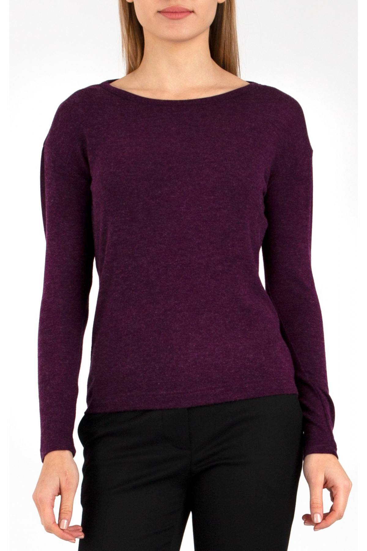 Bluză cu siluetă lejeră, confecționată dintr-un material gros și moale. Partea de sus este lejeră, mânecă lungă și decolteu tip barcă.
