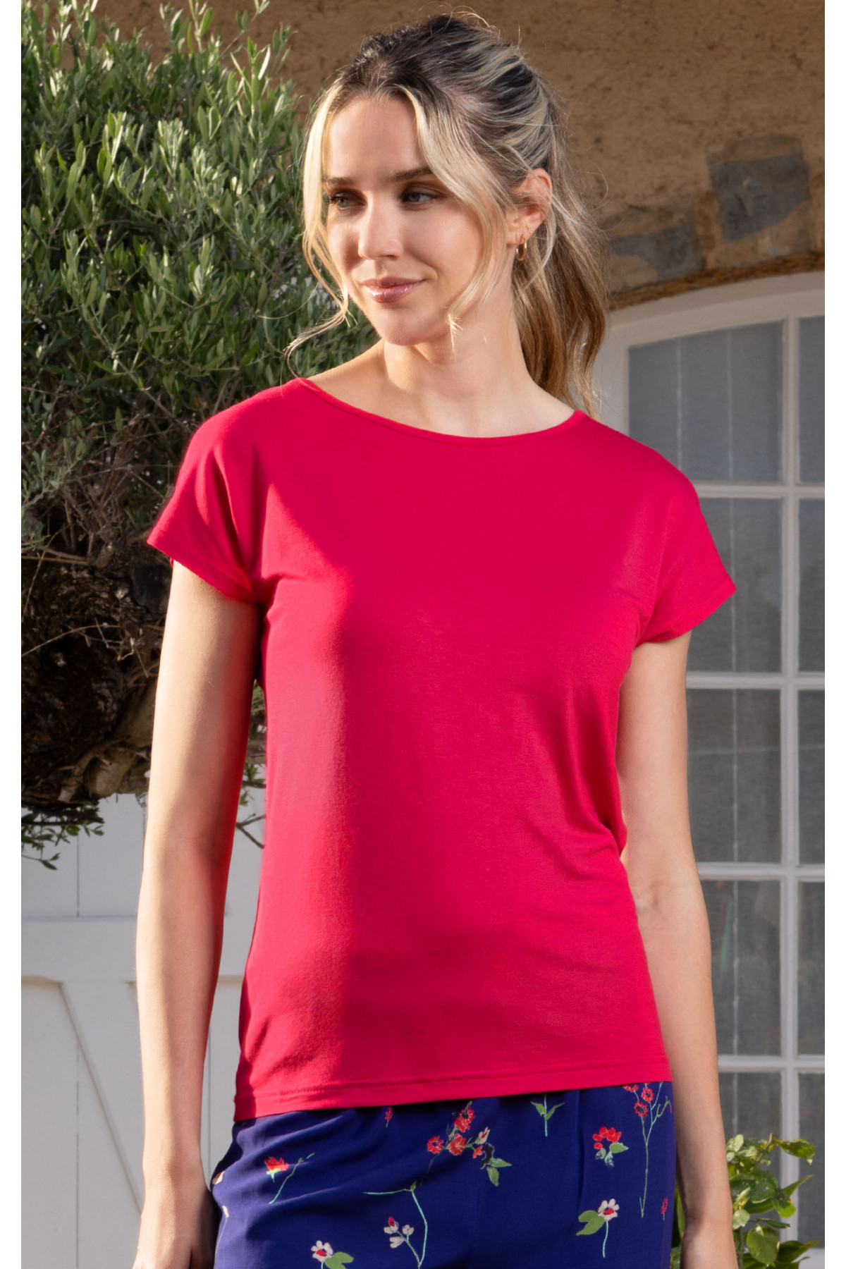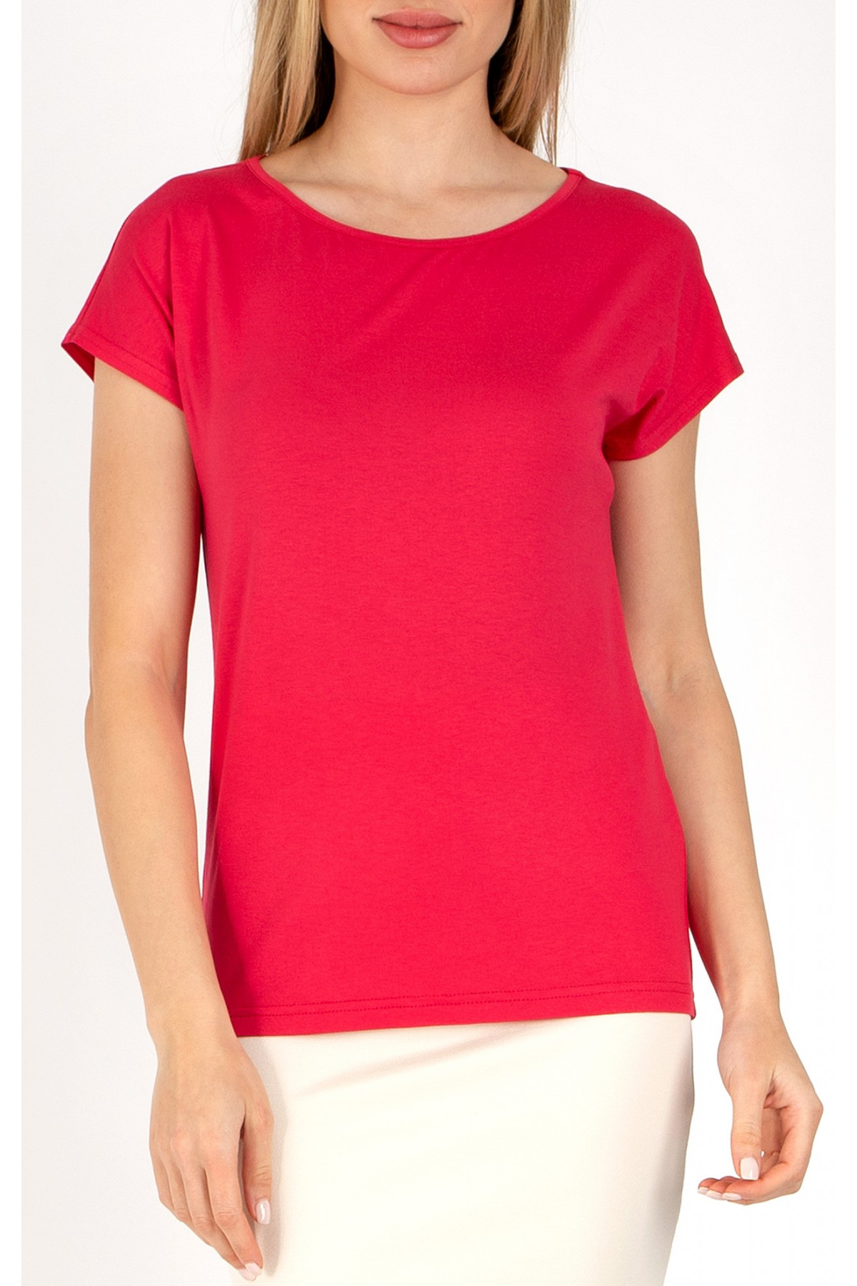 Bluză sport-elegantă cu siluetă lejeră, umăr căzut și decolteu tip barcă. Aceasta este confecționată dintr-un tricot de lux de culoare Raspberry Wine, cu o bordură pe decolteu în aceeași coloare. Potrivită pentru orice stil, această bluză colorată vă va împrospăta garderoba.