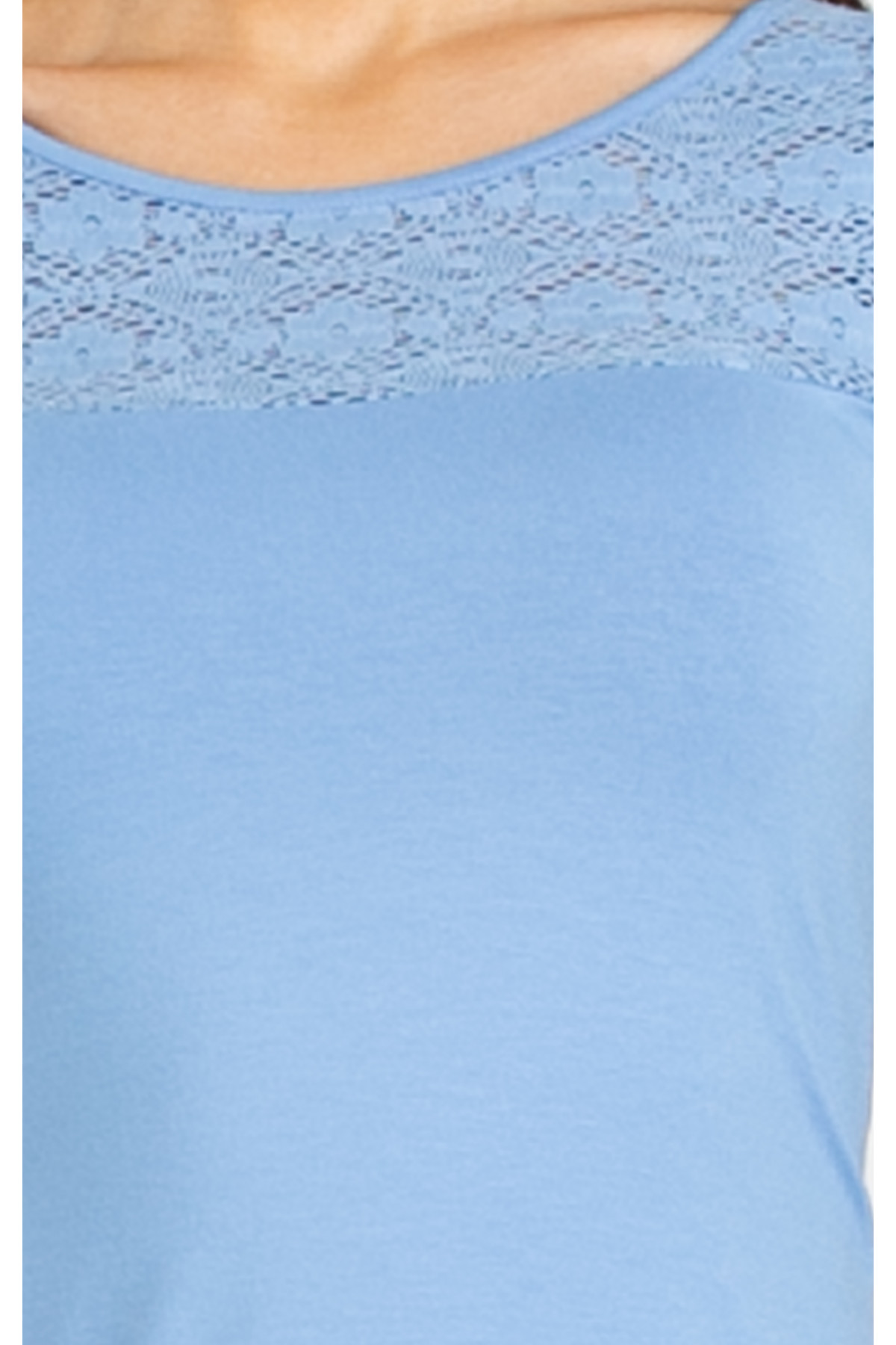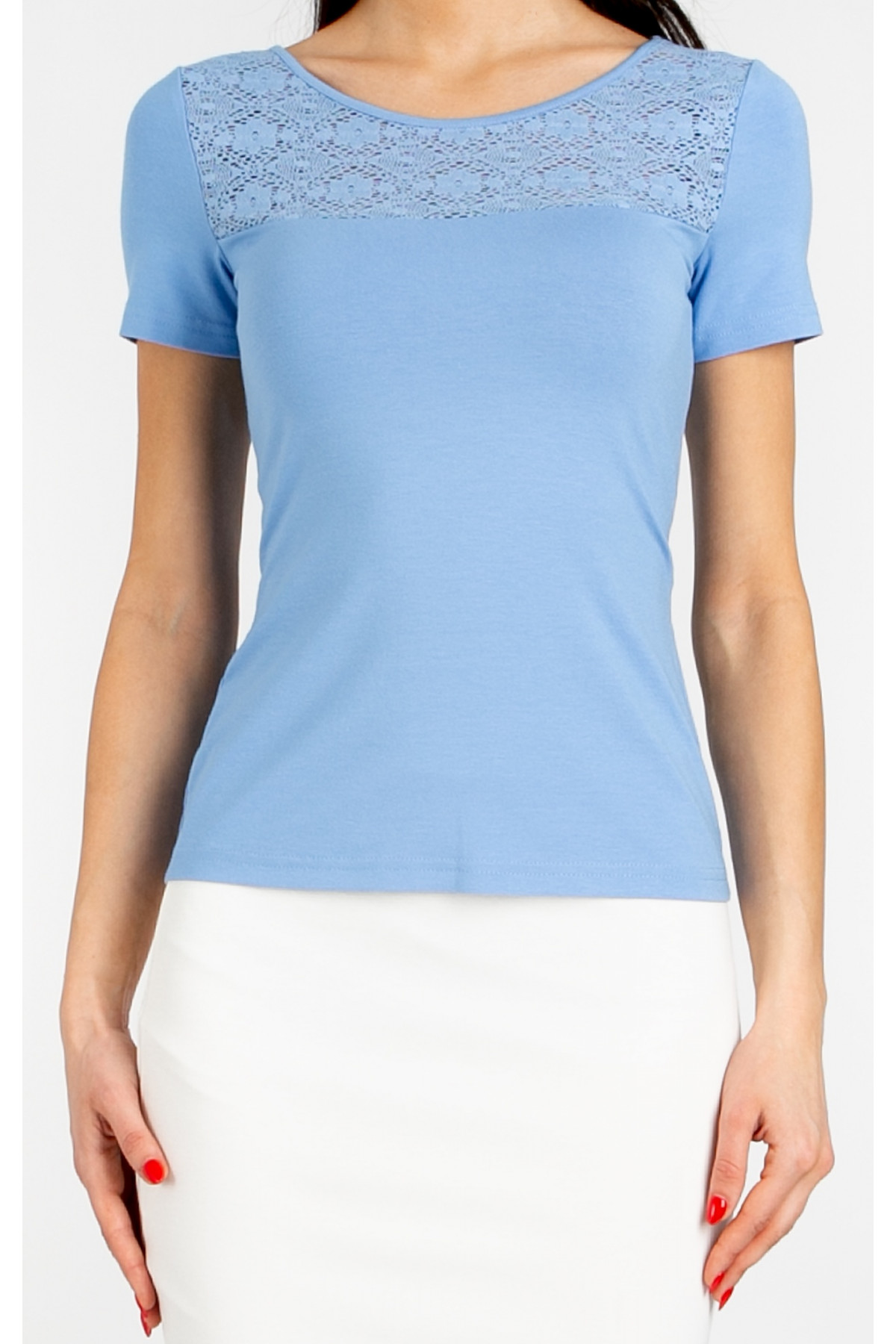 Bluză stilată cambrată, cu inserție din dantelă, în culoarea Sky Blue