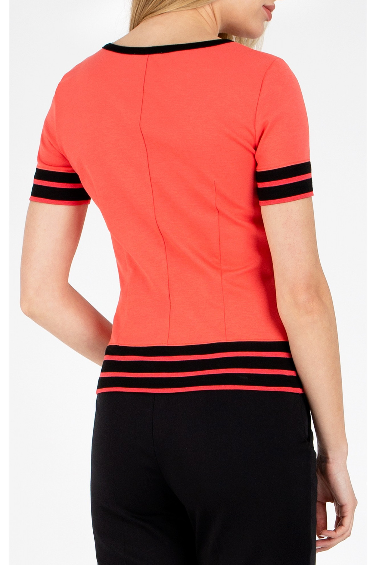 Bluză stilată de culoare Hot Coral dintr-un tricot ajustat cu dungi spectaculoase