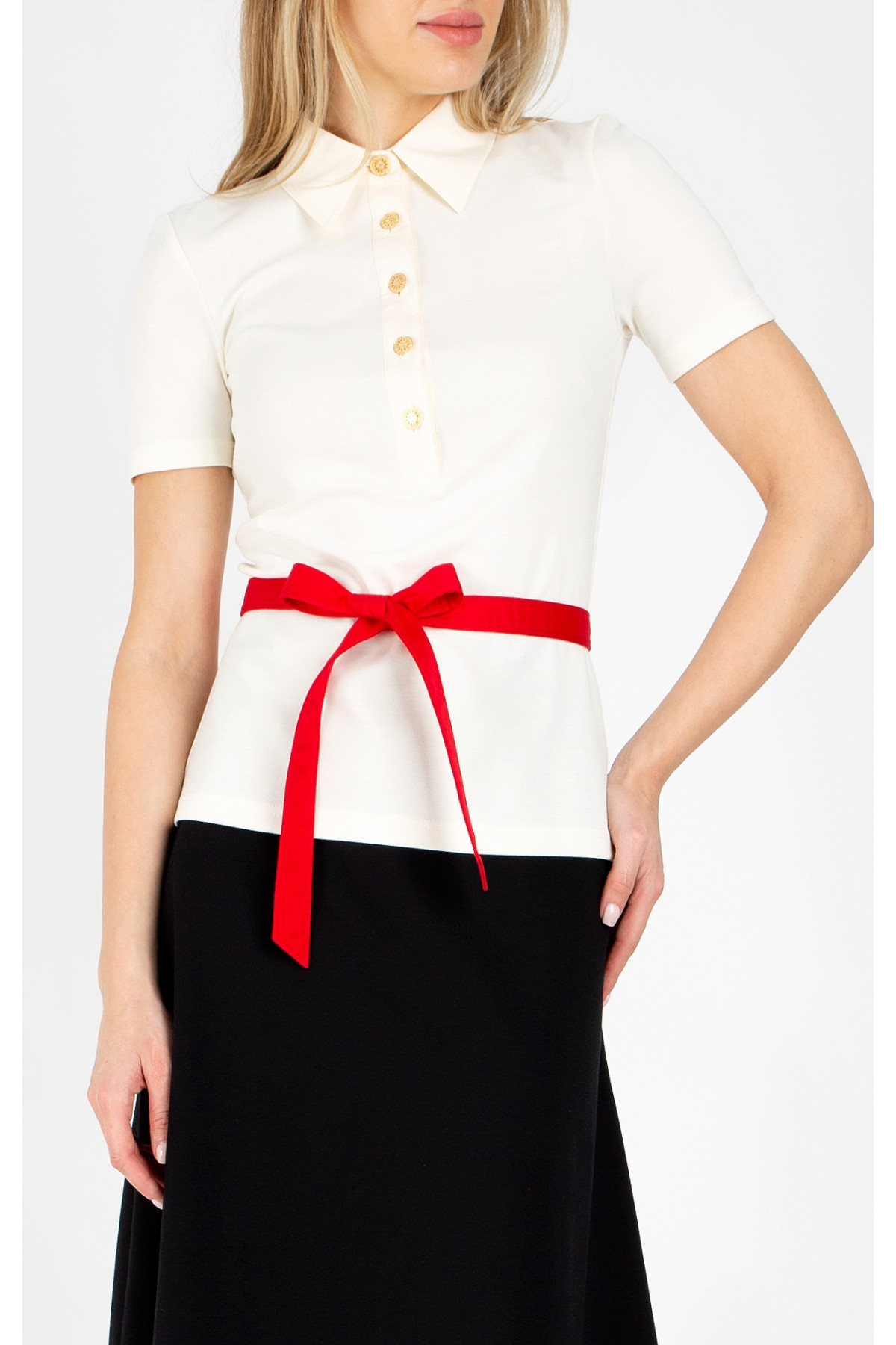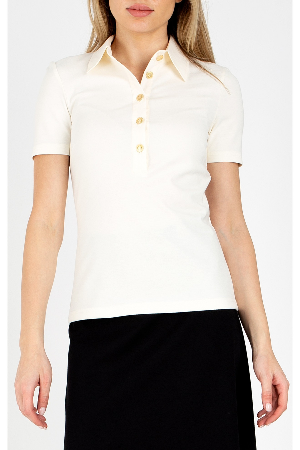 Bluză stilată din jerseu ajustat cu guler clasic și nasturi aurii