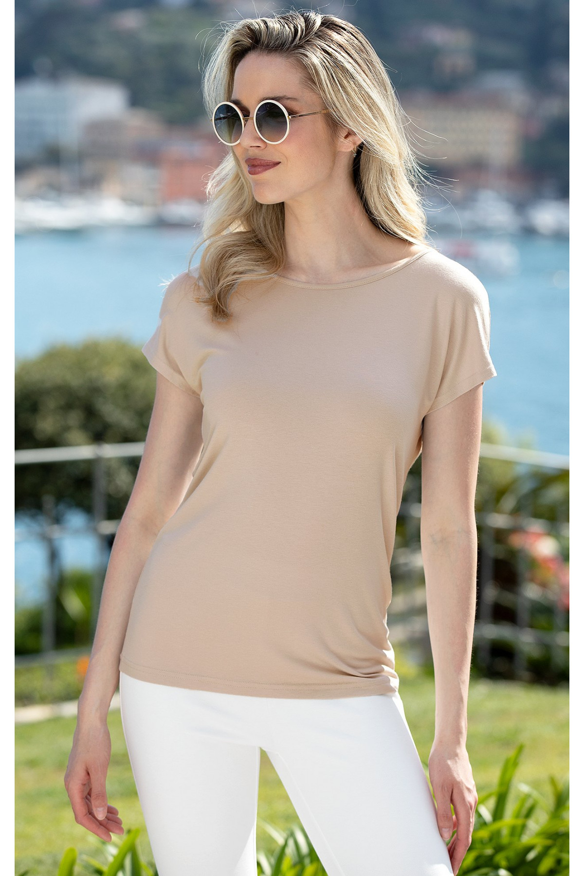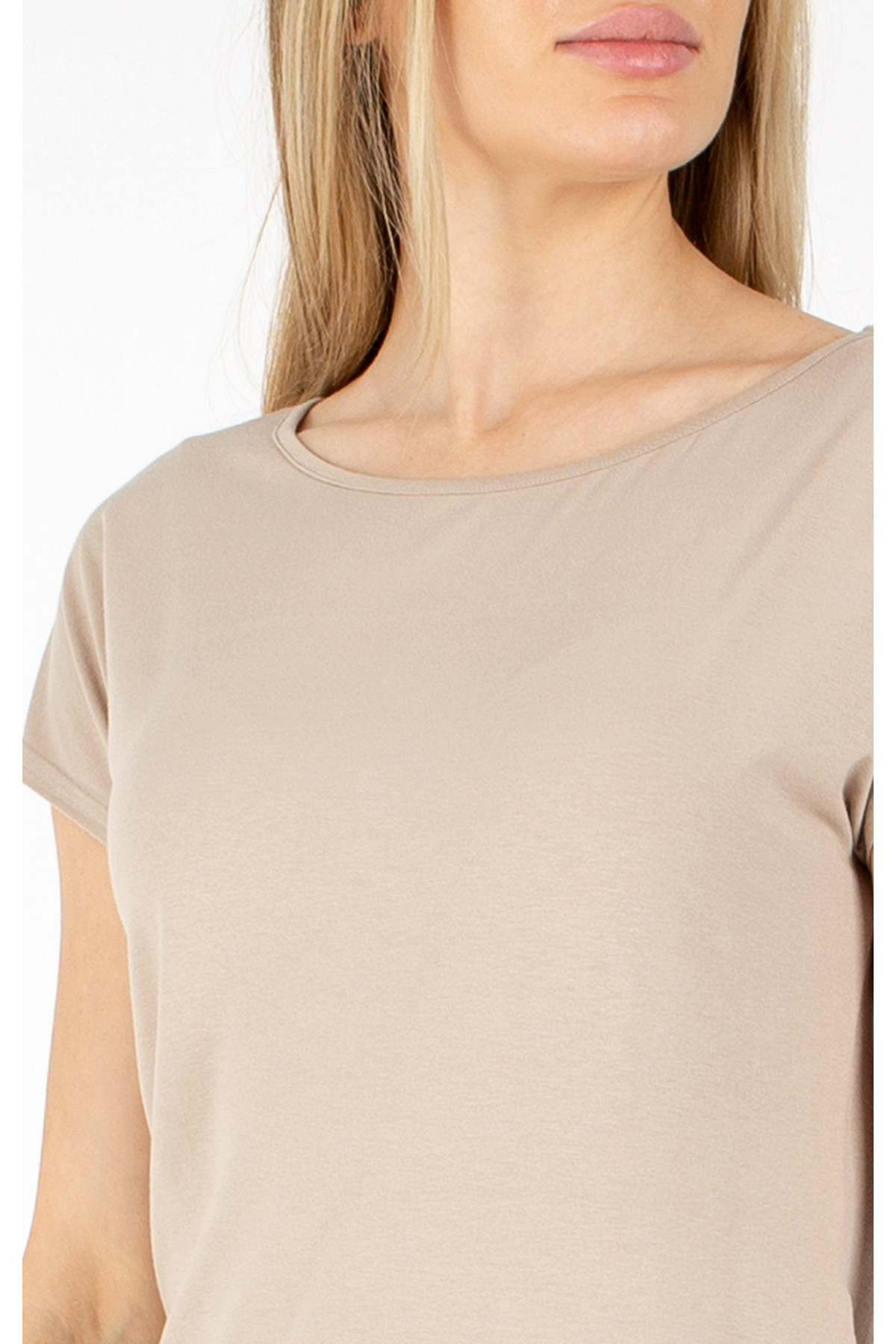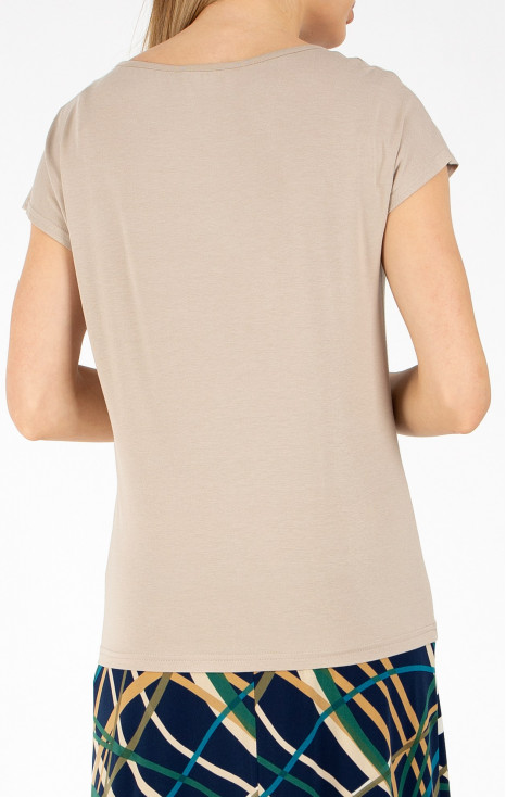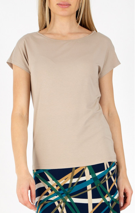 Bluză ușoară cu siluetă lejeră de culoare Warm Sand. Croiala comodă este o alegere excelentă pentru viața de zi cu zi, iar culoarea sa naturală o face simplu de a fi asortată cu fuste și pantaloni. Această bluză este confecționată dintr-un material de tricot ușor, partea de sus lejeră și partea de jos mulată, cu decolteu tip barcă și mânecă scurtă căzută. Bluza este disponibilă în mărimile de la S până la 4XL.