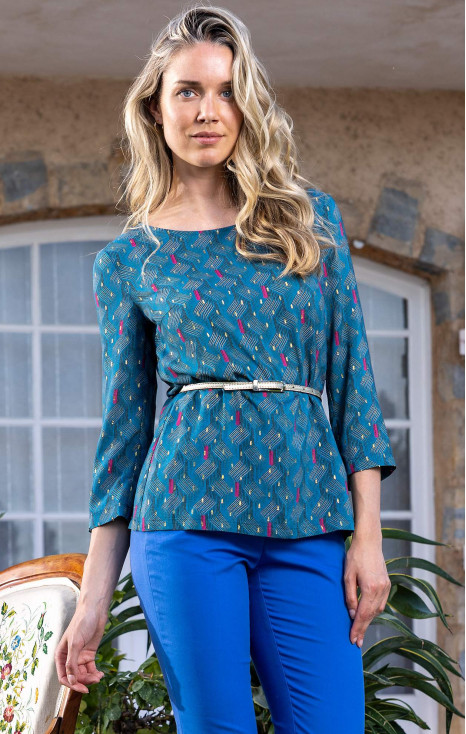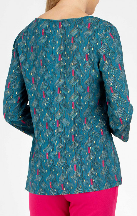 Bluză cu imprimeu grafic frumos în albastru și verde