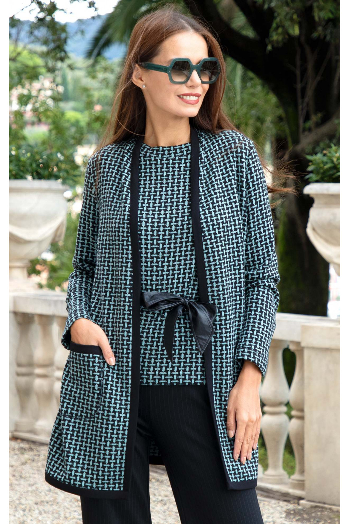 Cardigan moale și călduros cu imprimeu grafic, de culoare Pastel Turquoise cu accente negre
