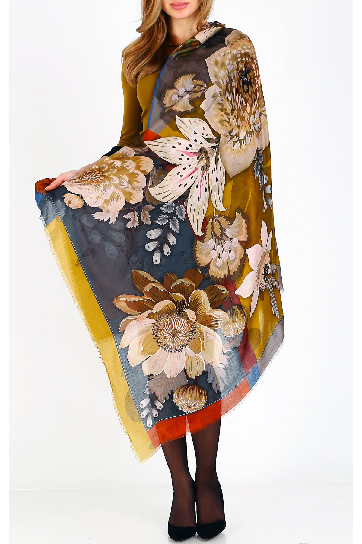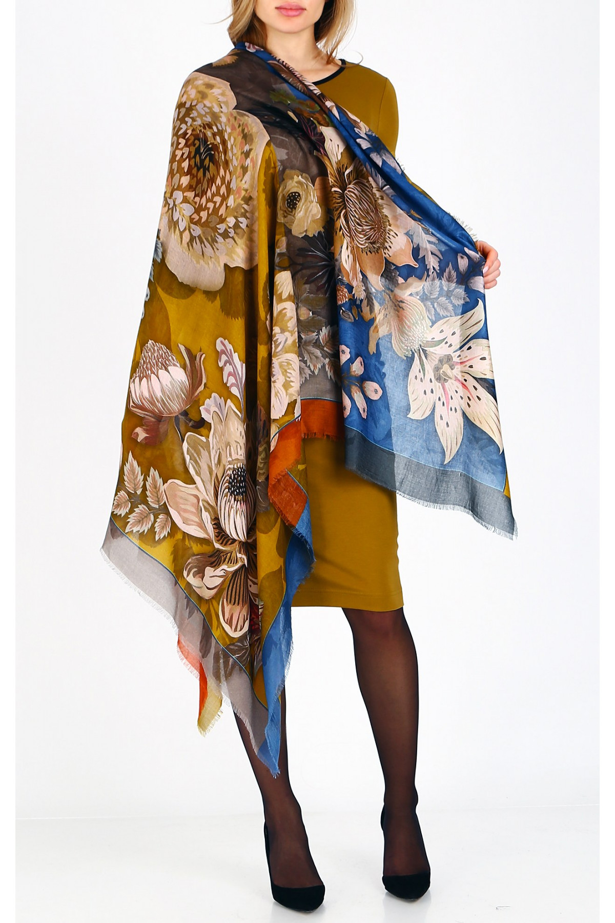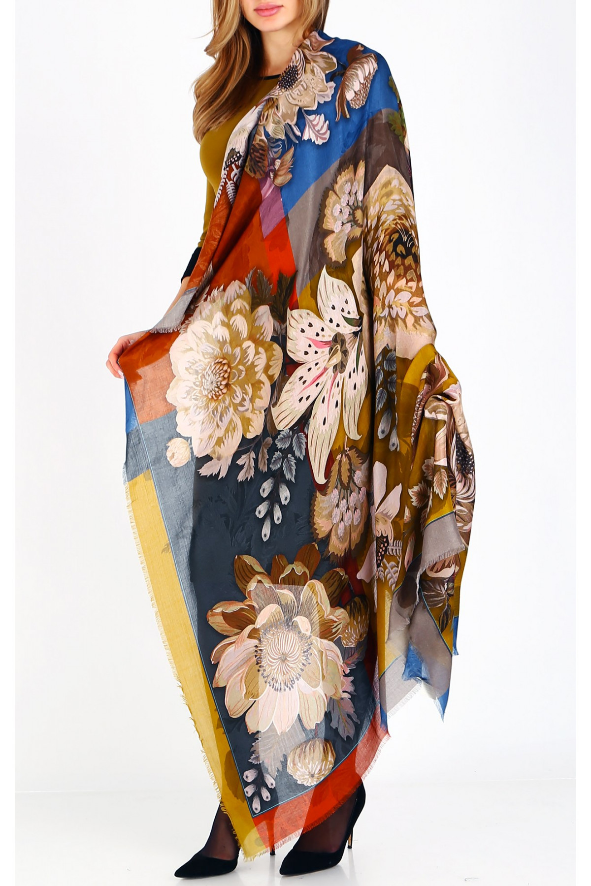 Eșarfă vaporoasă din mătase și modal Floral Harmony Square