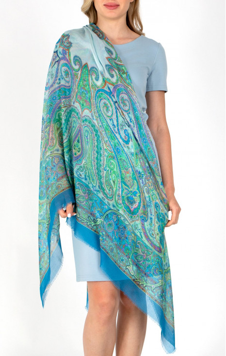 Eșarfă minunată din modal și mătase cu motive paisley în culorile albastru și verde