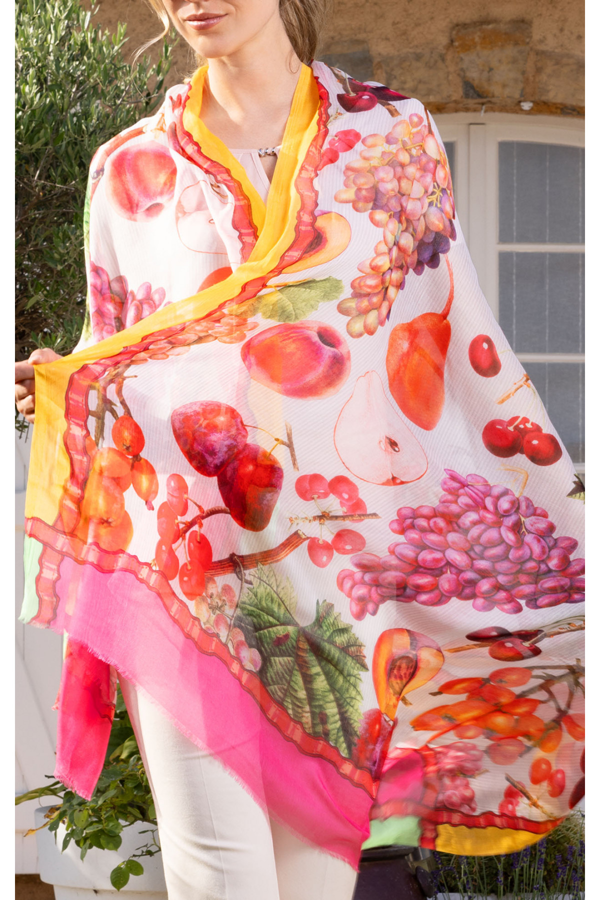 Eșarfă - natură moartă cu fructe fresh. Eșarfă din mătase și modal extrem de fină, care încarcă cu bună stare.