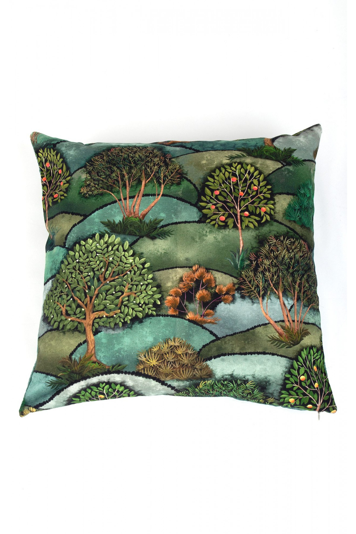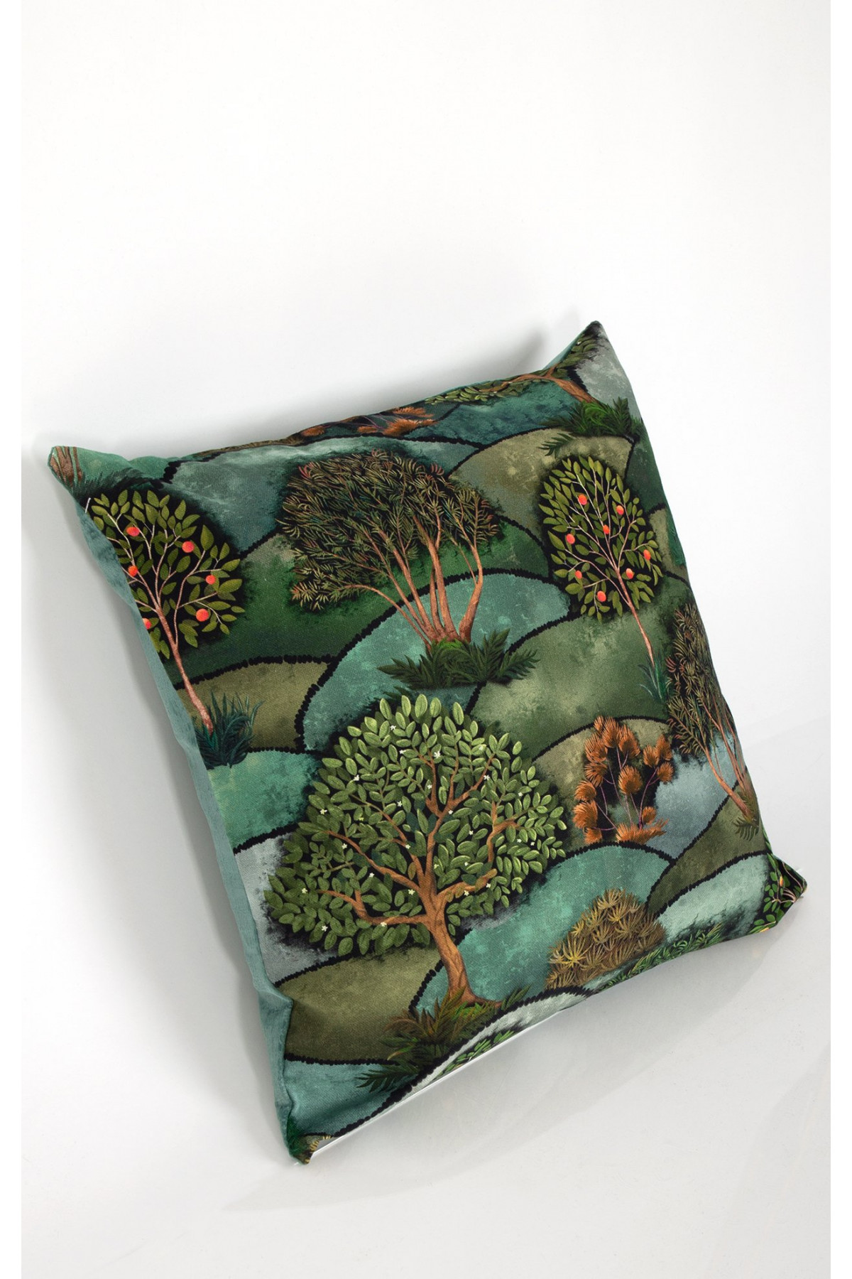 Față de pernă decorativă din materie de înaltă calitate, executată în Niderlanda cu print- peisaj forestier și spate într-o culoare din catifea. Produsă în Niderlanda. Dimensiuni 45/45 cm.Dimensiunea poate varia +-2cm