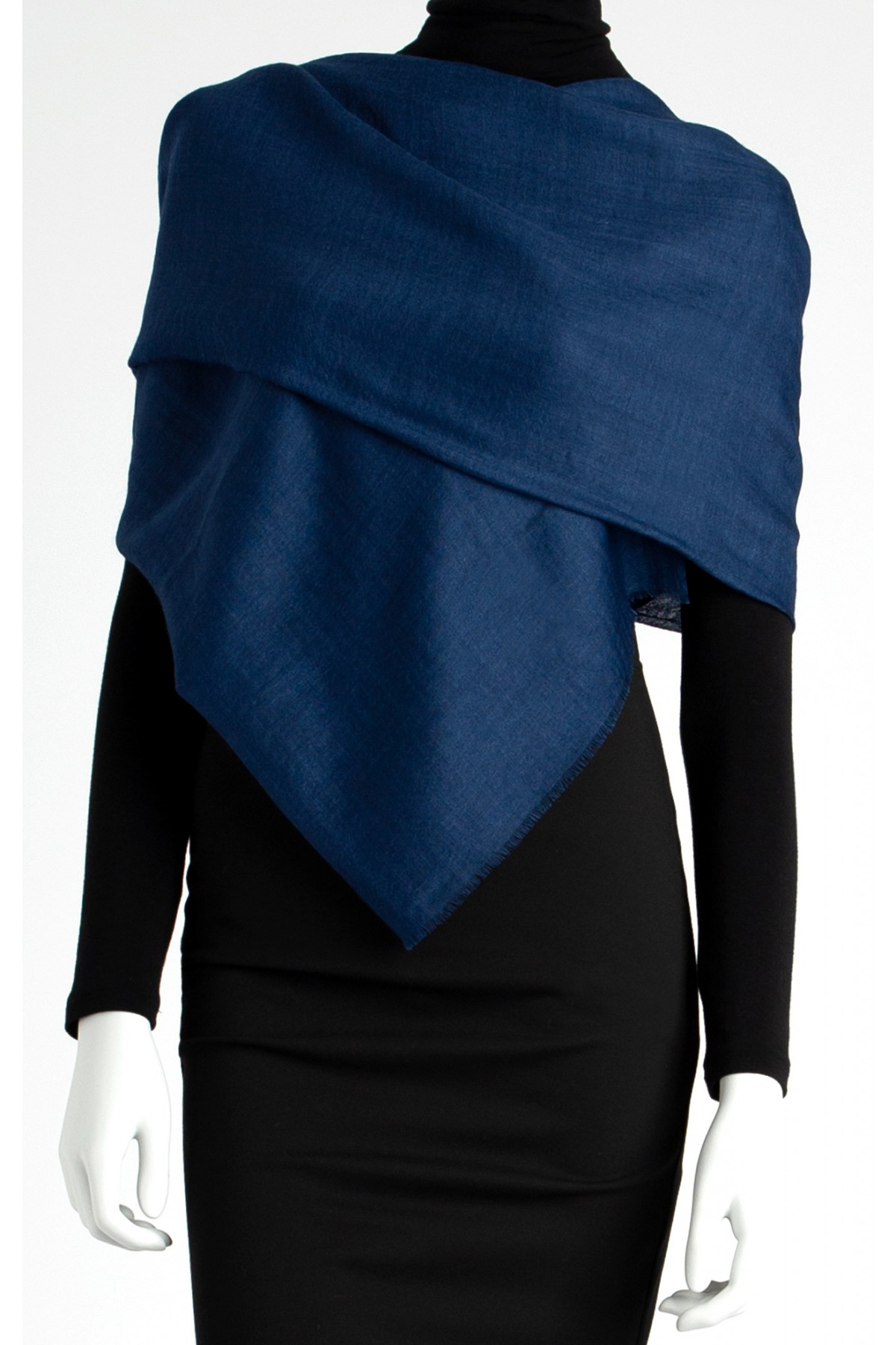 Fular călduros de iarnă din lână fină și mătase de culoare de Dark Denim