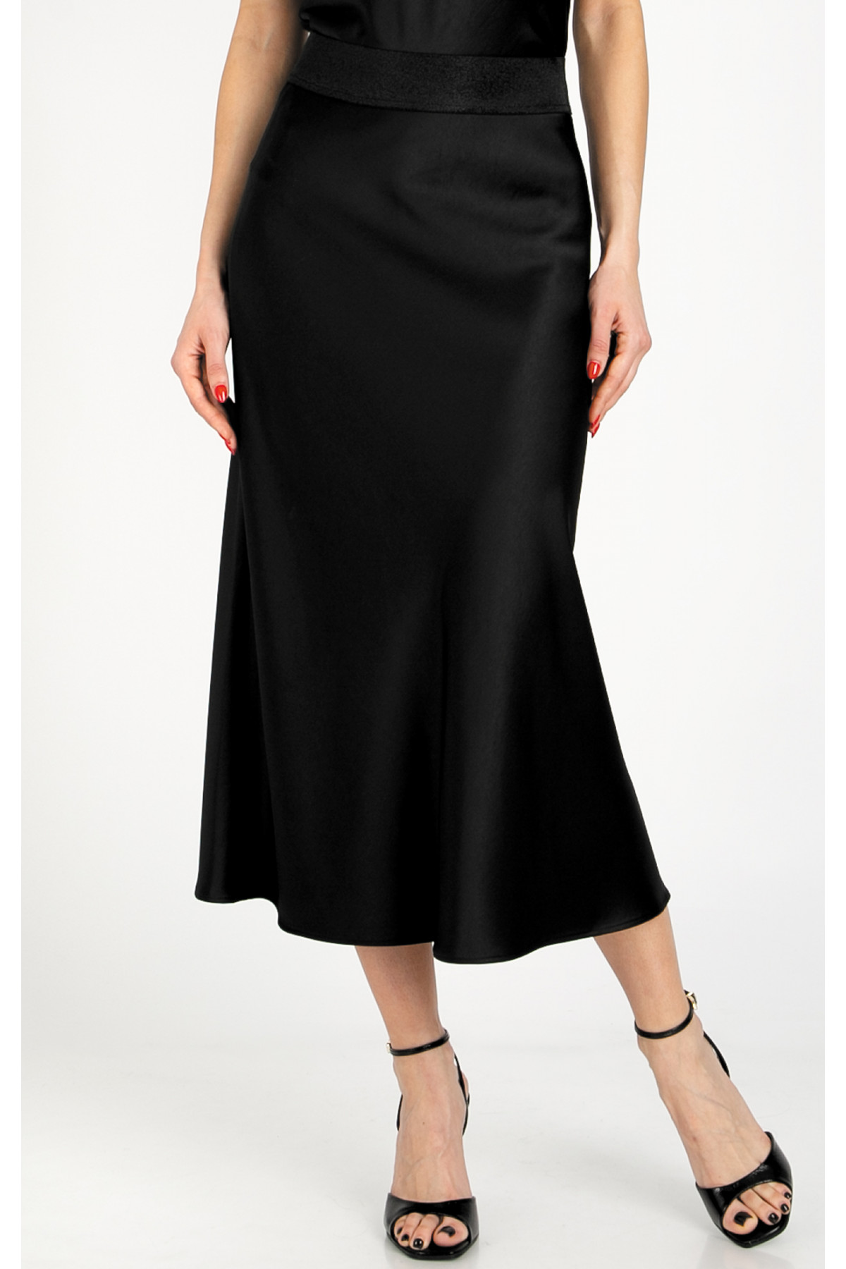 Fustă elegantă din satin, în culoarea neagră