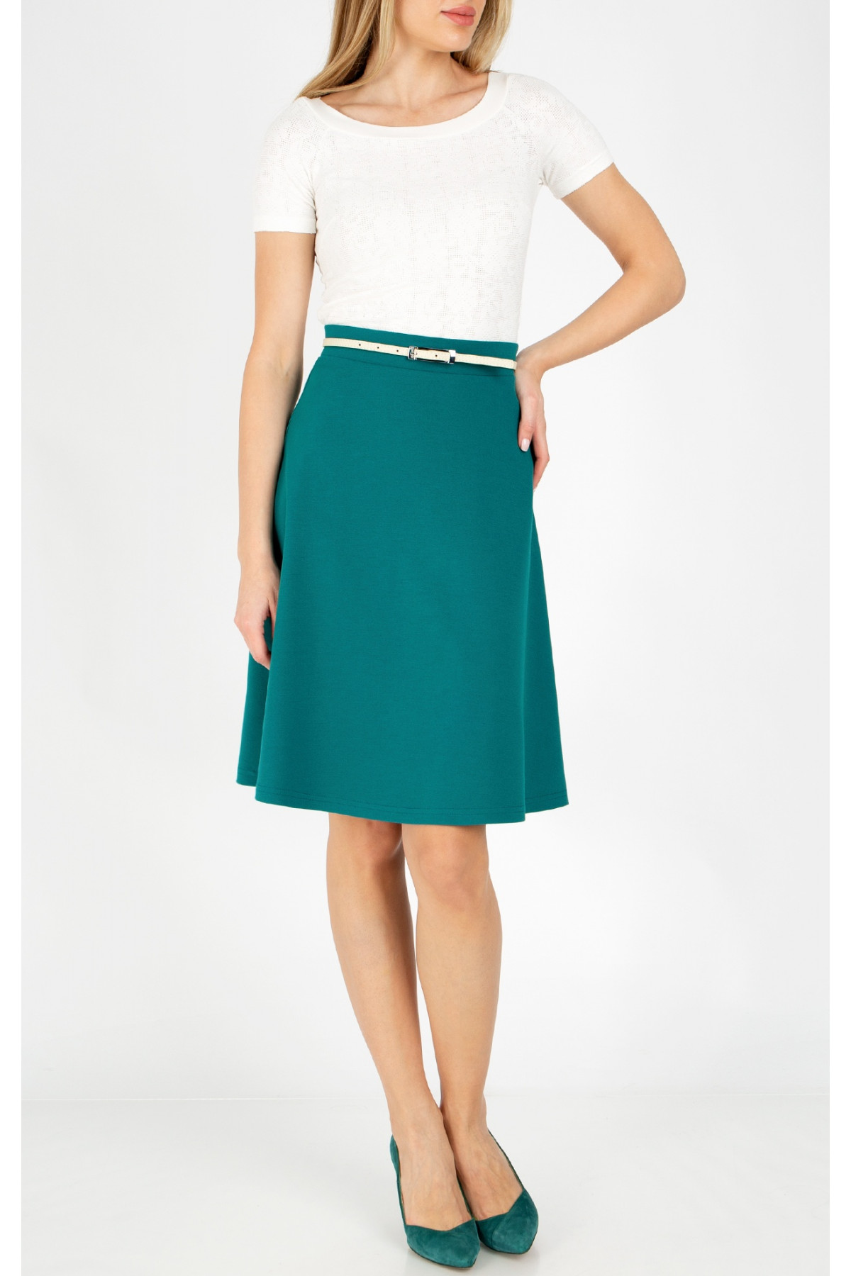 Fustă evazată din tricot ajustat de culoare Teal Green