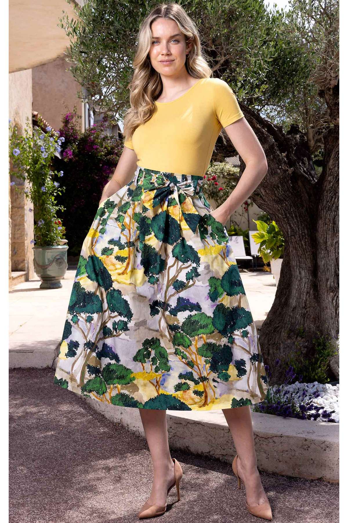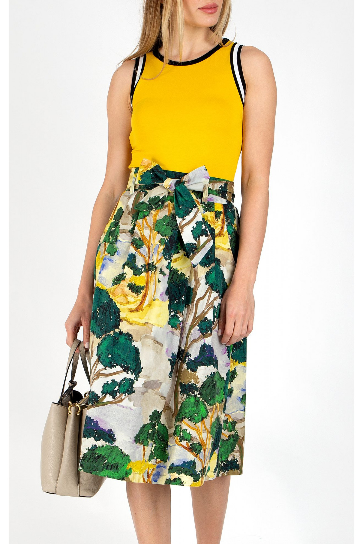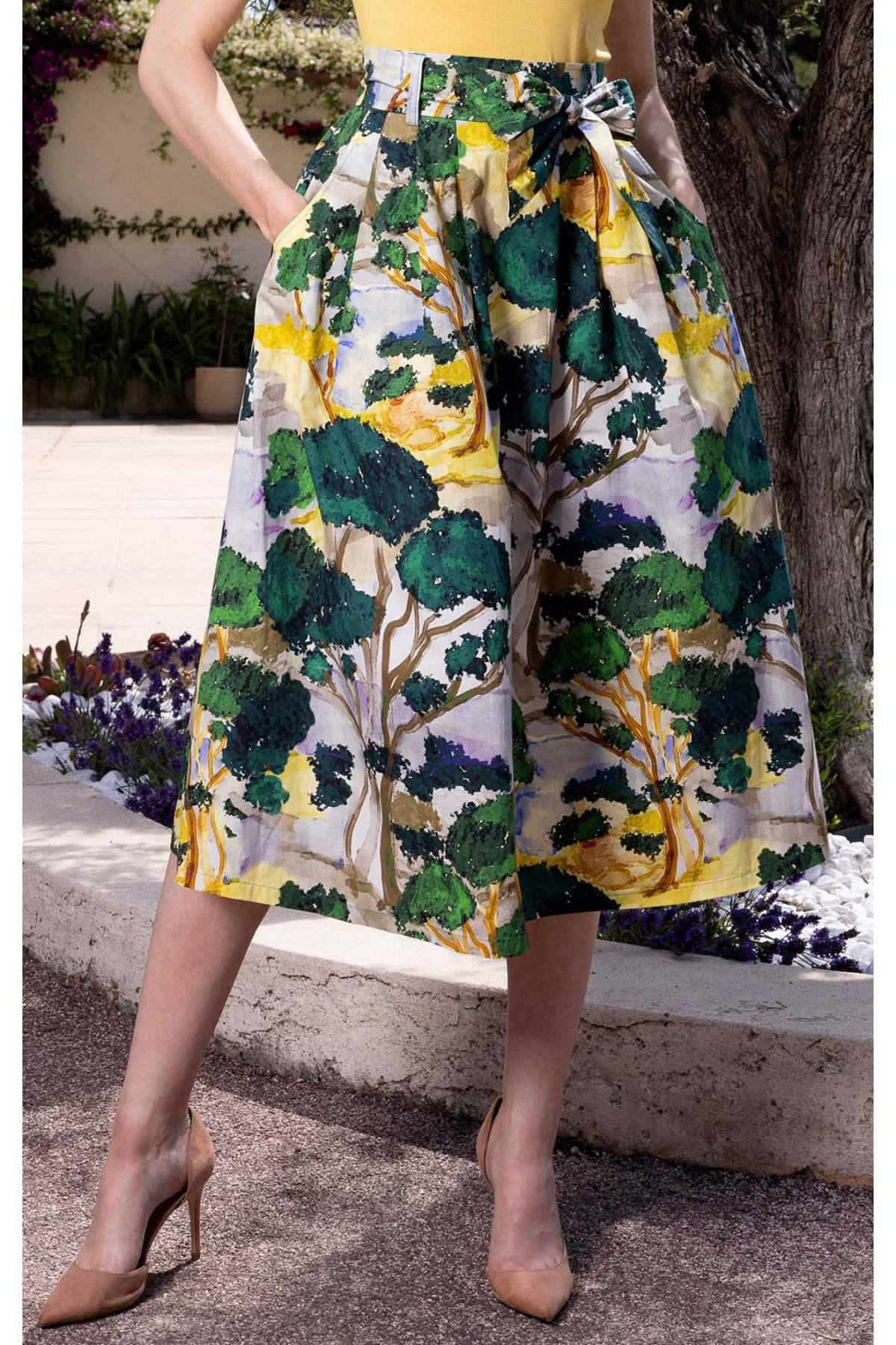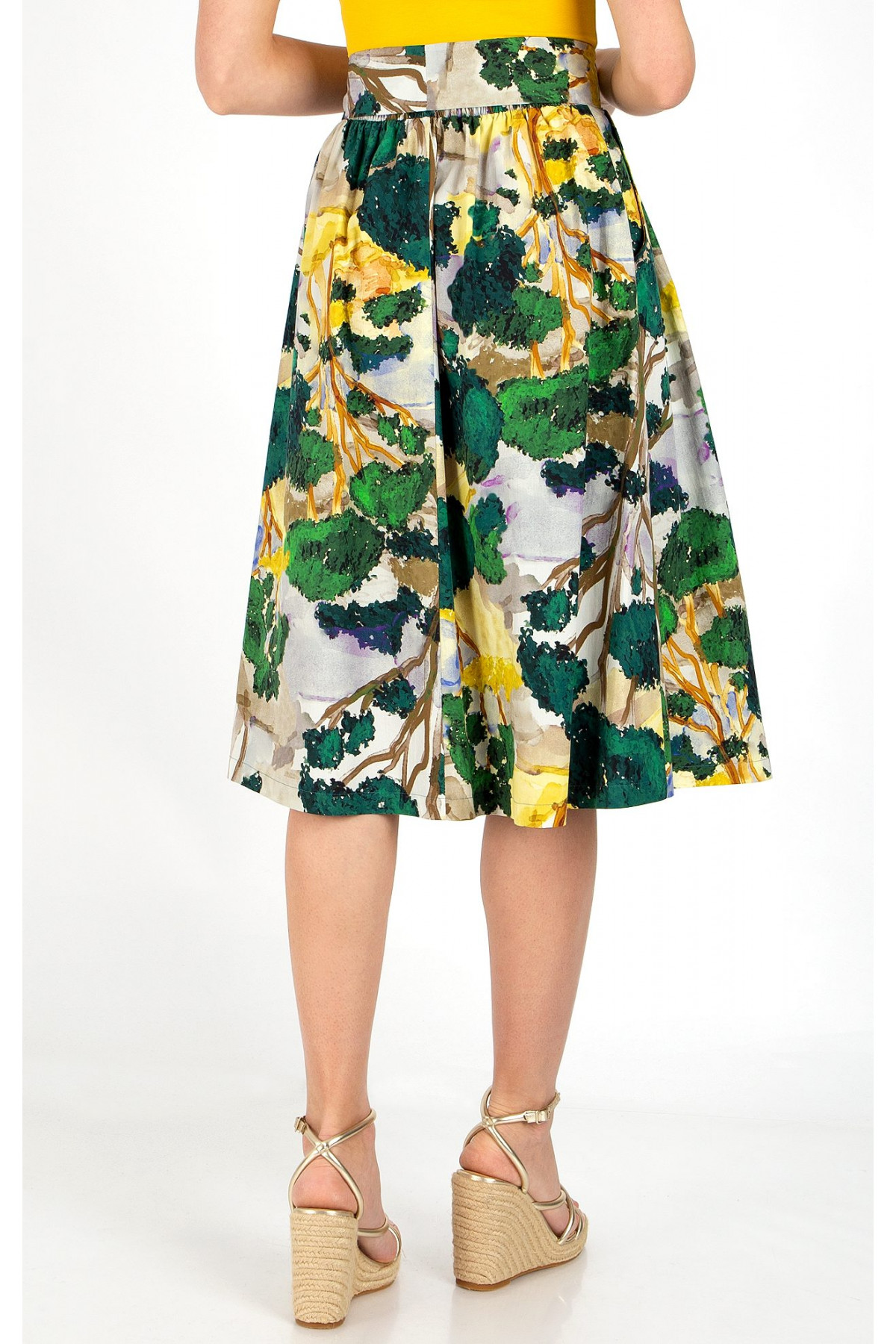 Fustă midi de vară dintr-un material de bumbac cu un imprimeu Green Forest