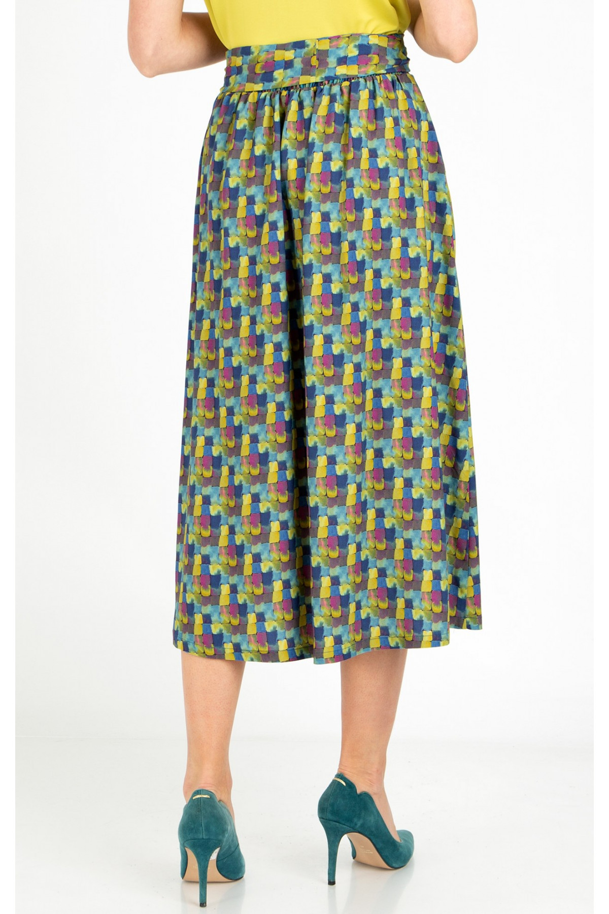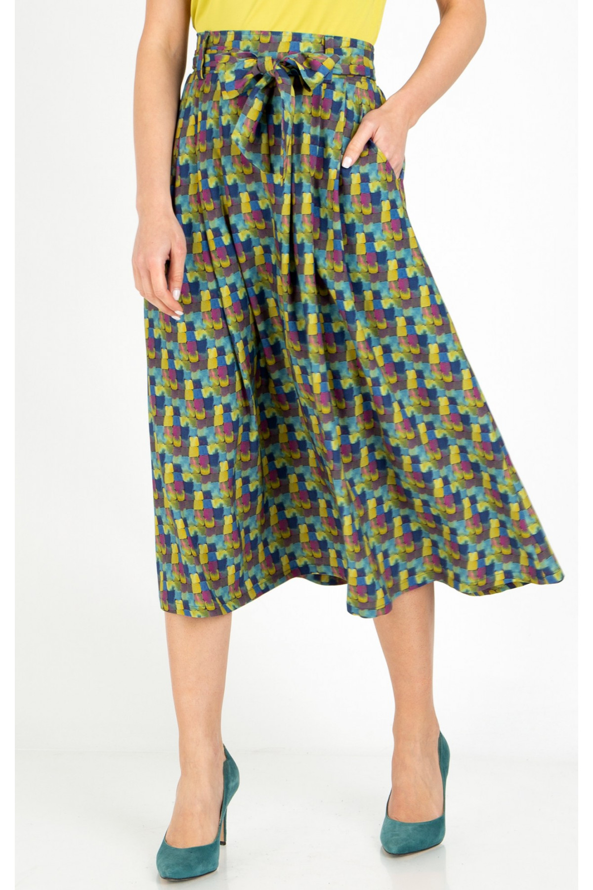 Fustă midi evazată cu imprimeu grafic în culori pastelate
