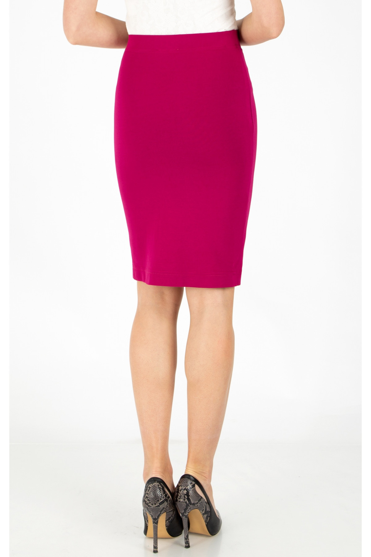 Fustă tip creion, confortabilă și elegantă, în culoarea Fuchsia Rose, confecționată dintr-un tricot de înaltă calitate. Fusta are lungime clasică până la genunchi, cu elastic lat în talie și fără căptușeală. Este potrivită pentru diverse ocazii și permite combinații variate, de la ținute casual-sport până la look-uri office-elegante.