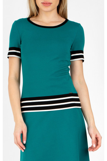 Geantă mică din piele naturală, de culoare Deep Teal. Modelul are un compartiment comun care se închide cu fermoar, cu un buzunar interior mic. Buzunarul exterior mare se închide cu nasture magnetic. Pentru un confort mai mare, geanta are un bretea mai scurtă cu elemente metalice argintii, are și posibilitatea de a fi purtată peste umăr cu o bretea lungă reglabilă. Confecționată în Italia, la comandă lui Daphne. Dimensiuni: 27/16/8