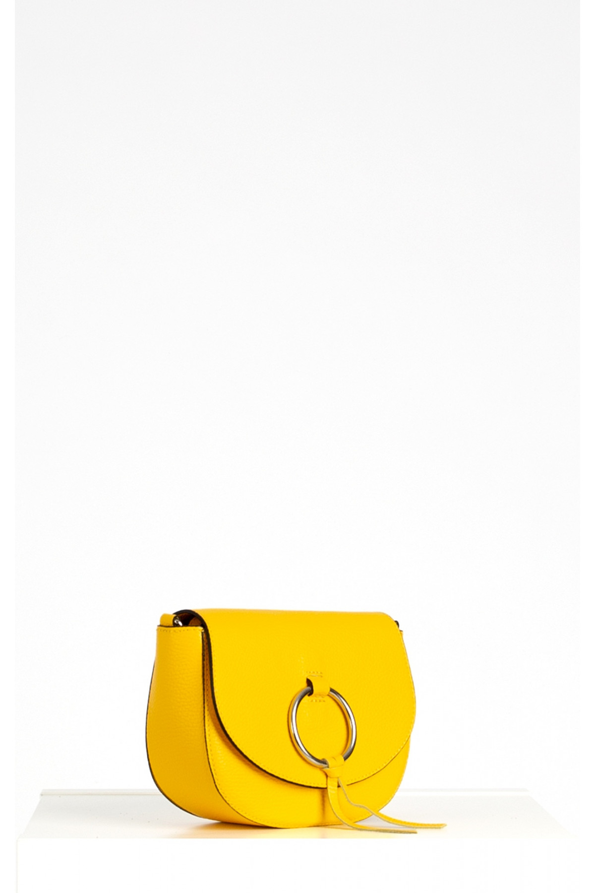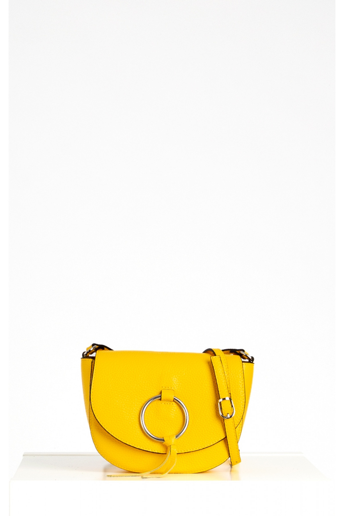 Geantă din piele naturală cu curea lungă.Modelul are un compartiment și un mic buzunar linterior cu fermoar. Fabricată în Italia la comanda Daphne. Dimensiuni: 22/16/8