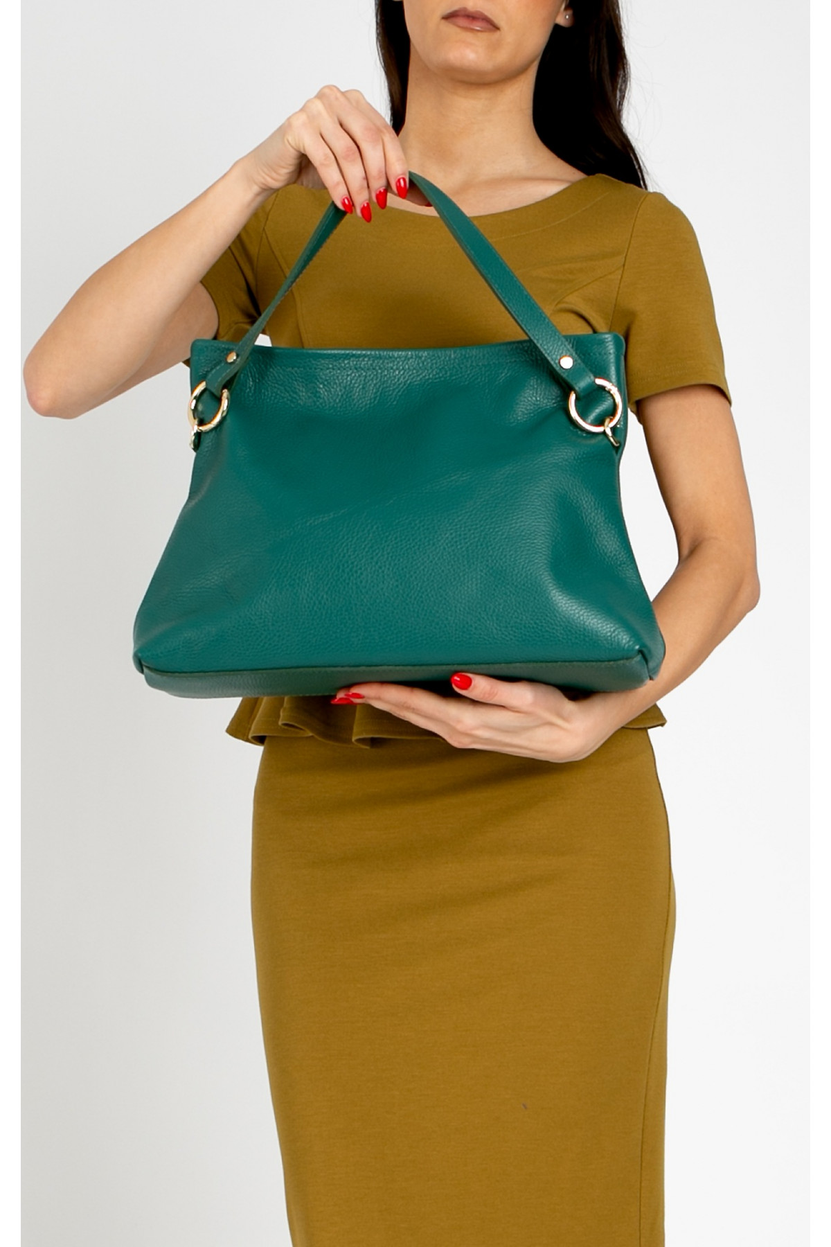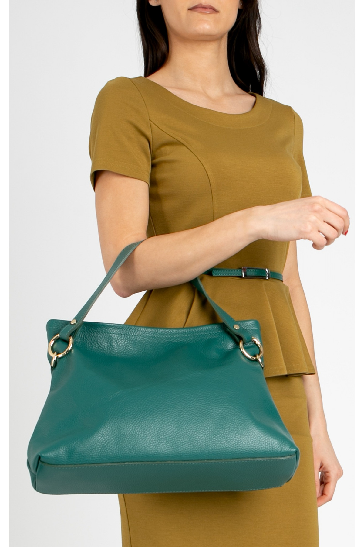 Geantă mare de damă din piele naturală moale, în culoarea Alpine Green