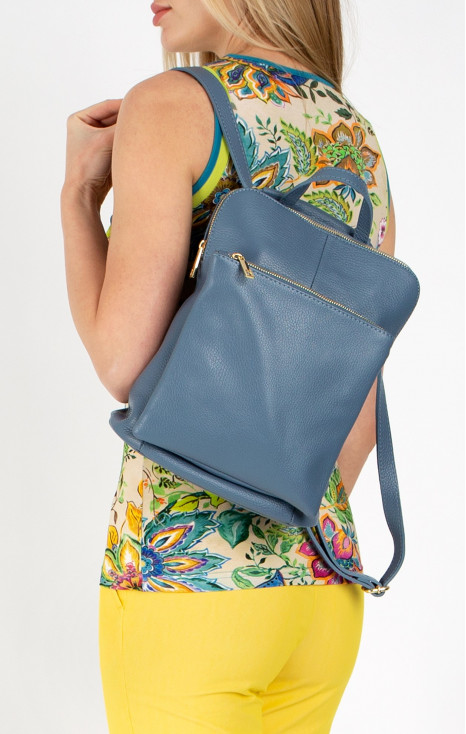 Geantă elegantă de damă, cu design elegant din piele naturală de culoare Blue Heaven
