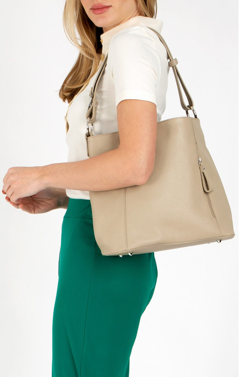 Geantă mare de damă, cu design rafinat, din piele natural, de culoare Sesame