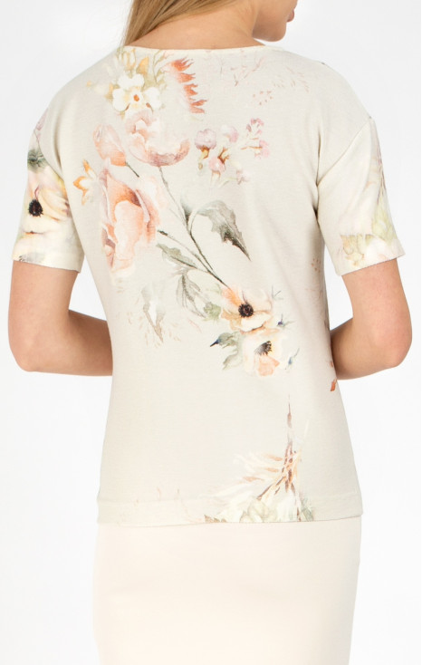 Bluză cu o siluetă lejeră, cu un imprimeu într-o combinație atractivă de motive florale și animaliere