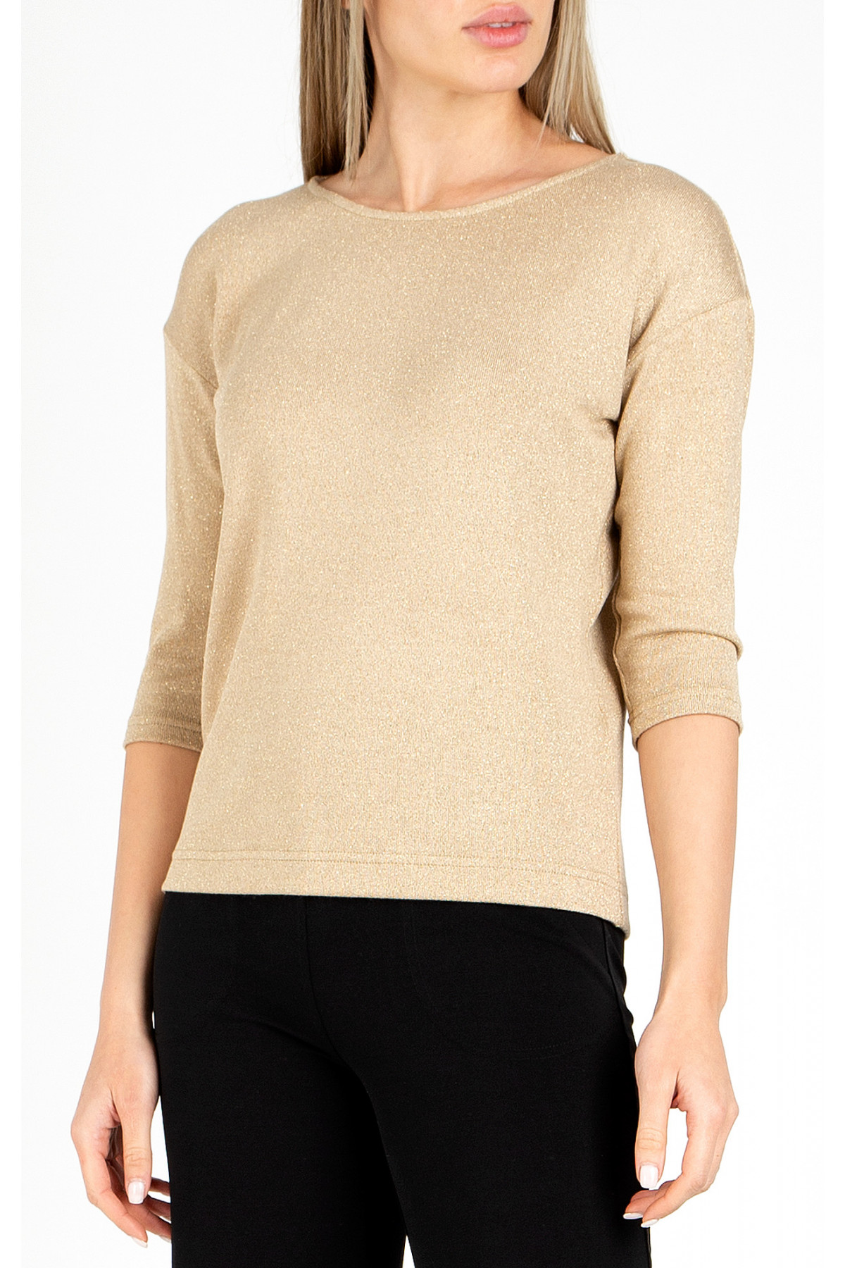 Bluză într-o siluetă lejeră cu melange gri cu luciu auriu