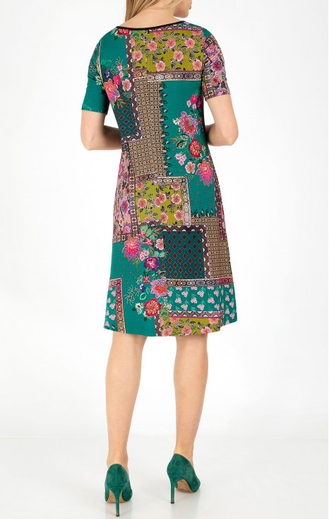 Rochie cu siluetă A, din tricot elastic, cu imprimeu grafic în verde închis