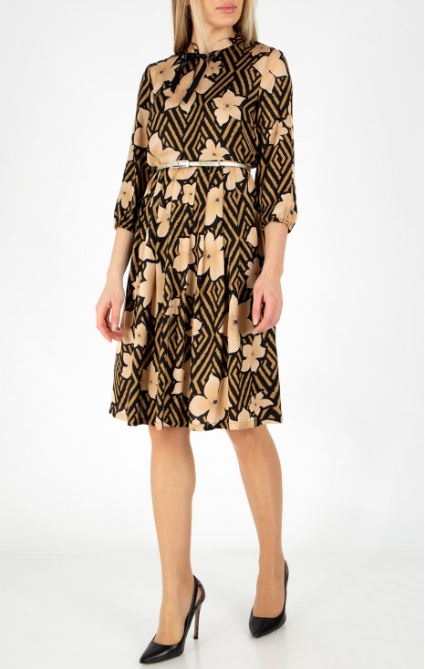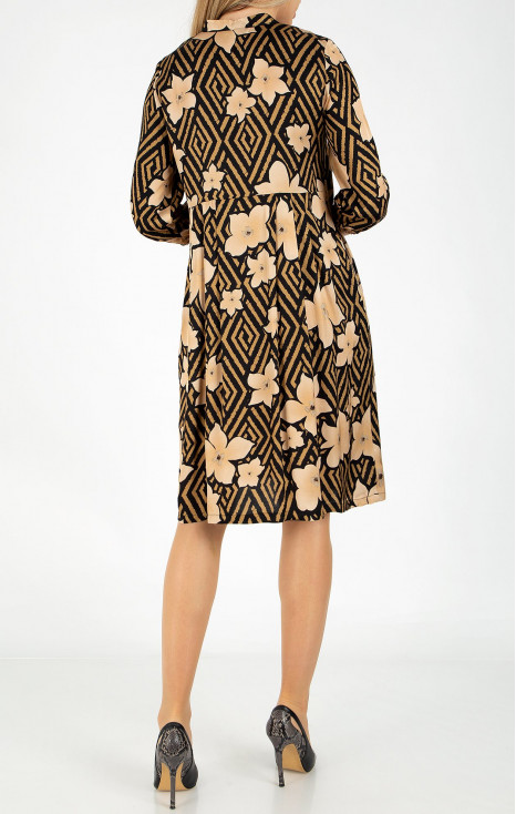 Rochie midi stilată cu imprimeu floral de culoare albastru închis și ecru