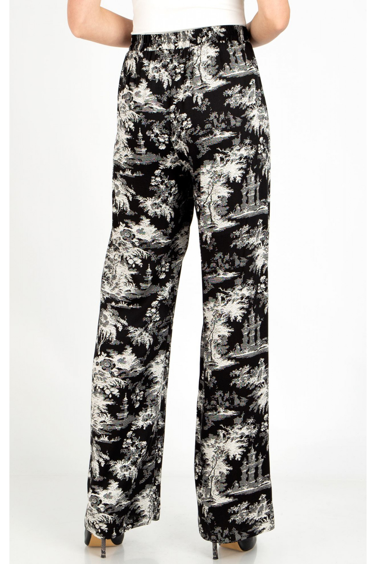Pantaloni din viscoză ușoară cu desen alb-negru