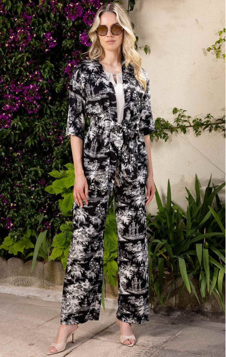 Pantalon negru cu croiala amplă din jerseu în culoarea