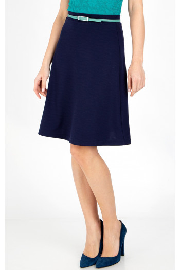 Fustă scurtă evazată din jerseu gros de culoare Deep Cobalt