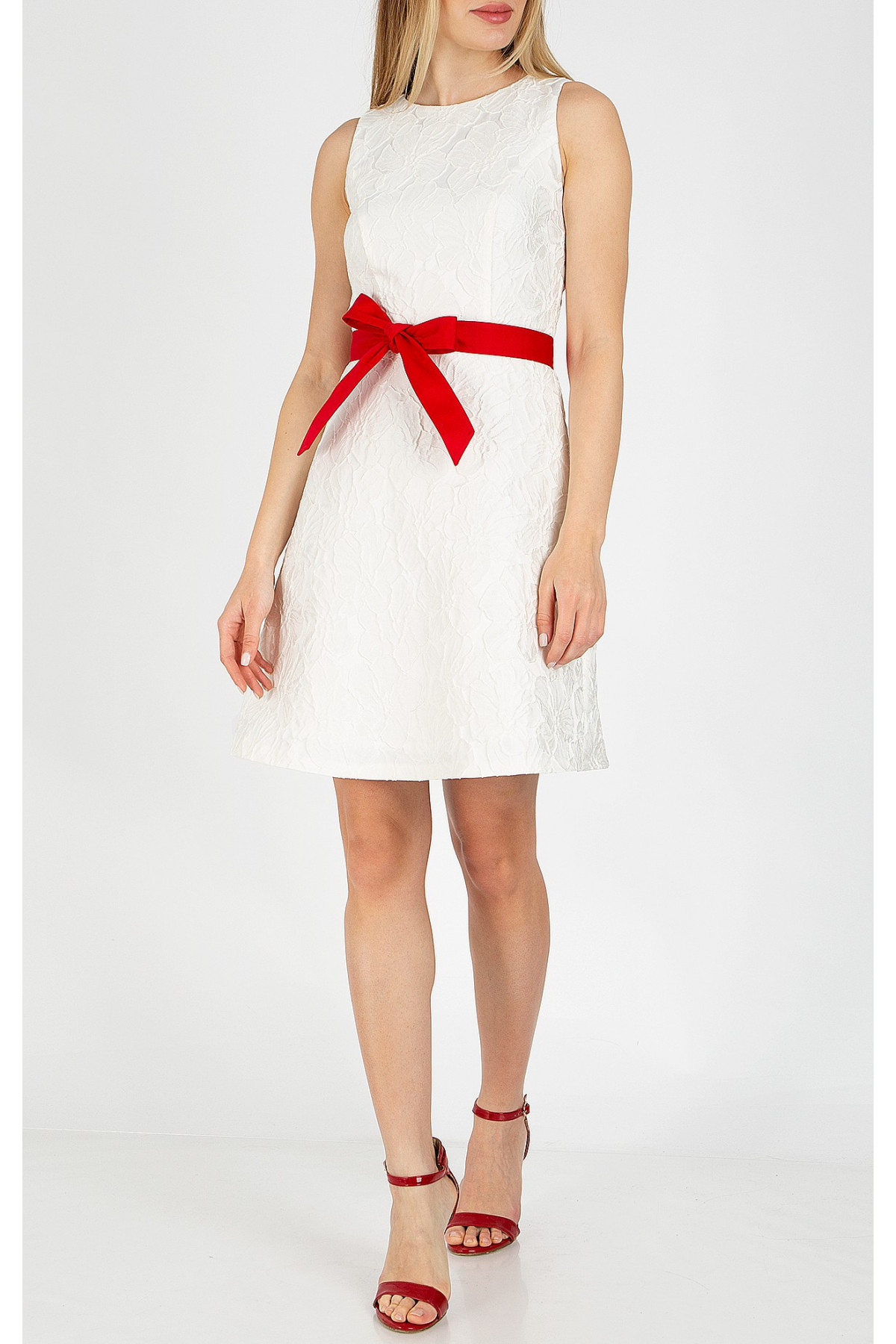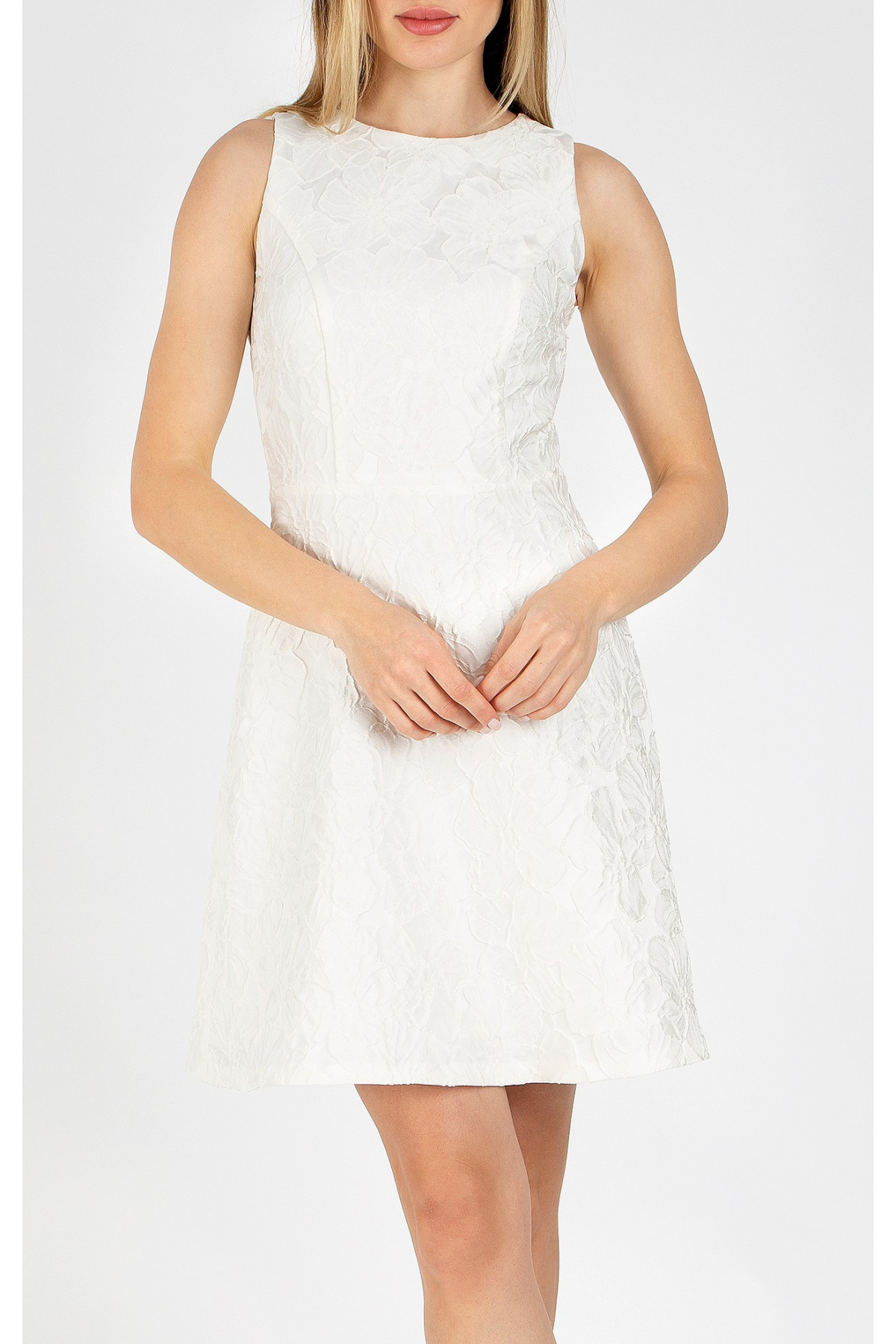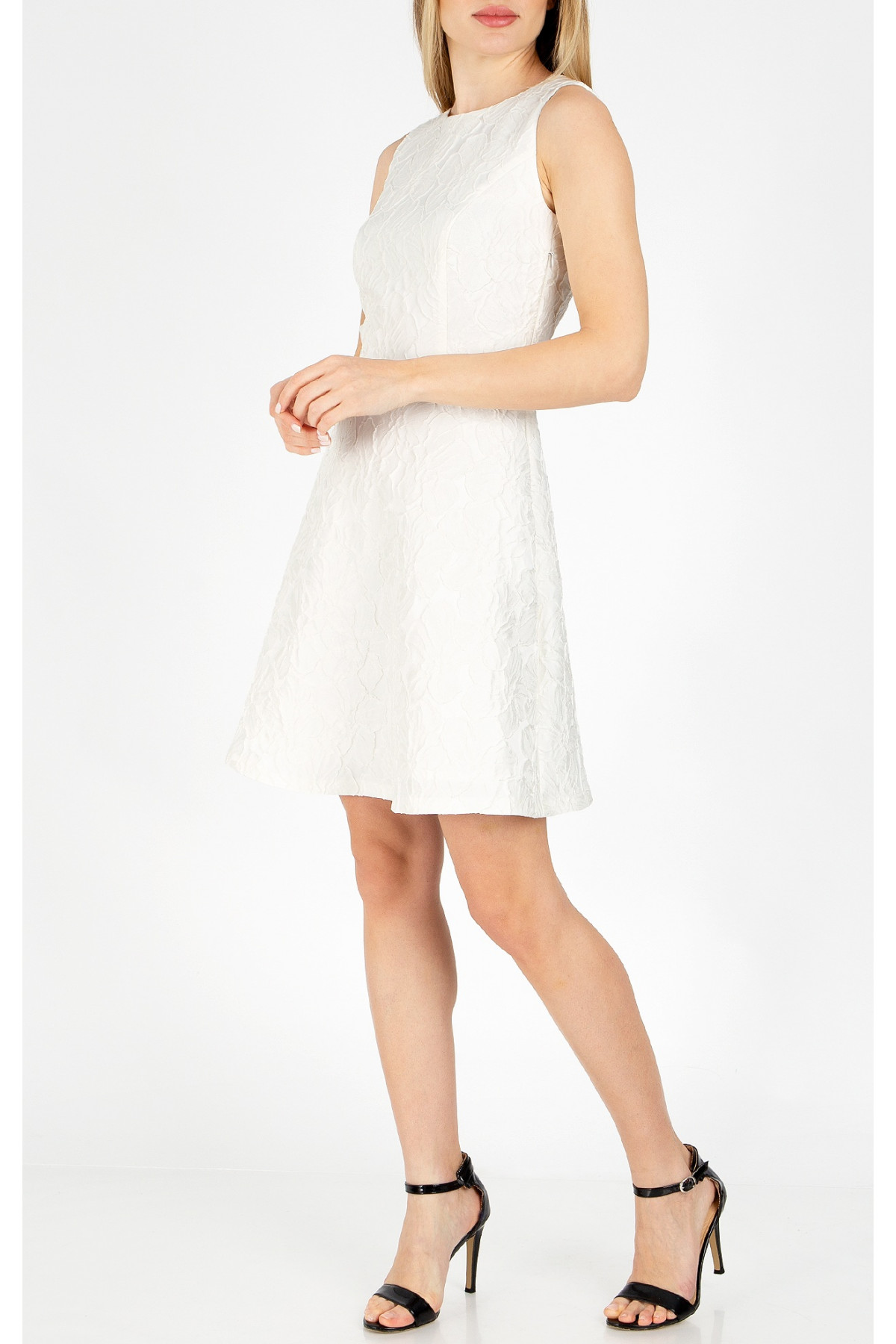 Rochie din jacquard italian cu motive florale bogate, de culoare Vanilla Ice