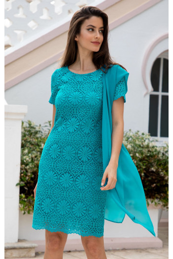 Rochie dreaptă din bumbac de calitate înaltă cu model grafic în nuanțe variate de albastru. Acest model are siluetă dreaptă, lungime clasică până la genunchi, decolteu rotund restrâns și închidere cu fermoar ascuns pe spate. Croiala confortabilă și țesătura naturală oferă un confort extrem pentru zilele de vară la birou sau afară. Combinați cu un sacou din același model pentru a obține un aspect complet.