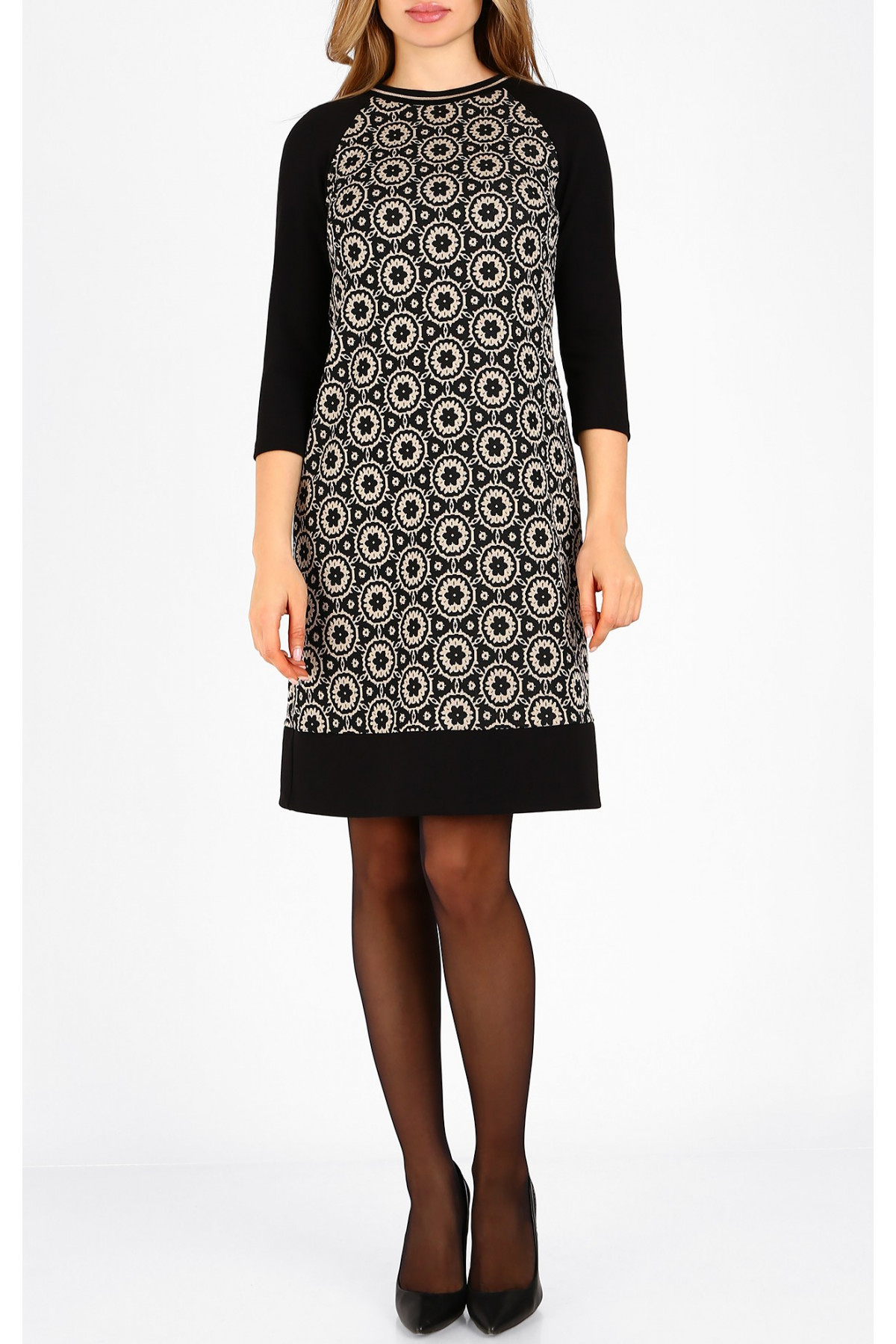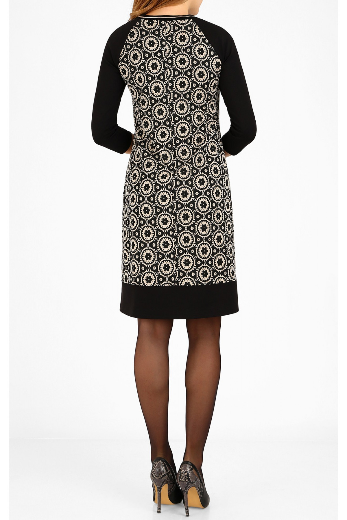 Rochie dreaptă din jacard tricotat dens, cu motiv ornamental în negru și ecru