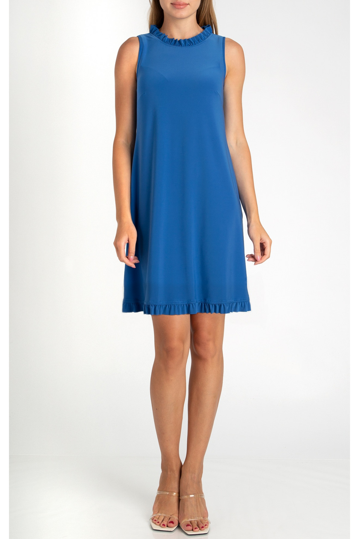 Rochie elegantă, confecționată din jerseu solid. Materialul elastic și silueta lejera conferă o senzație de confort de vară și liberate a mișcărilor.