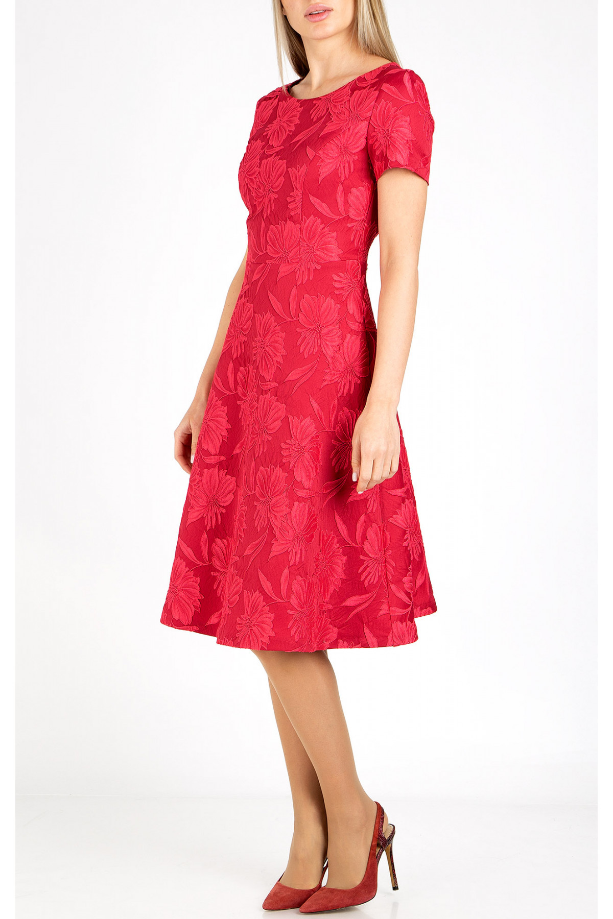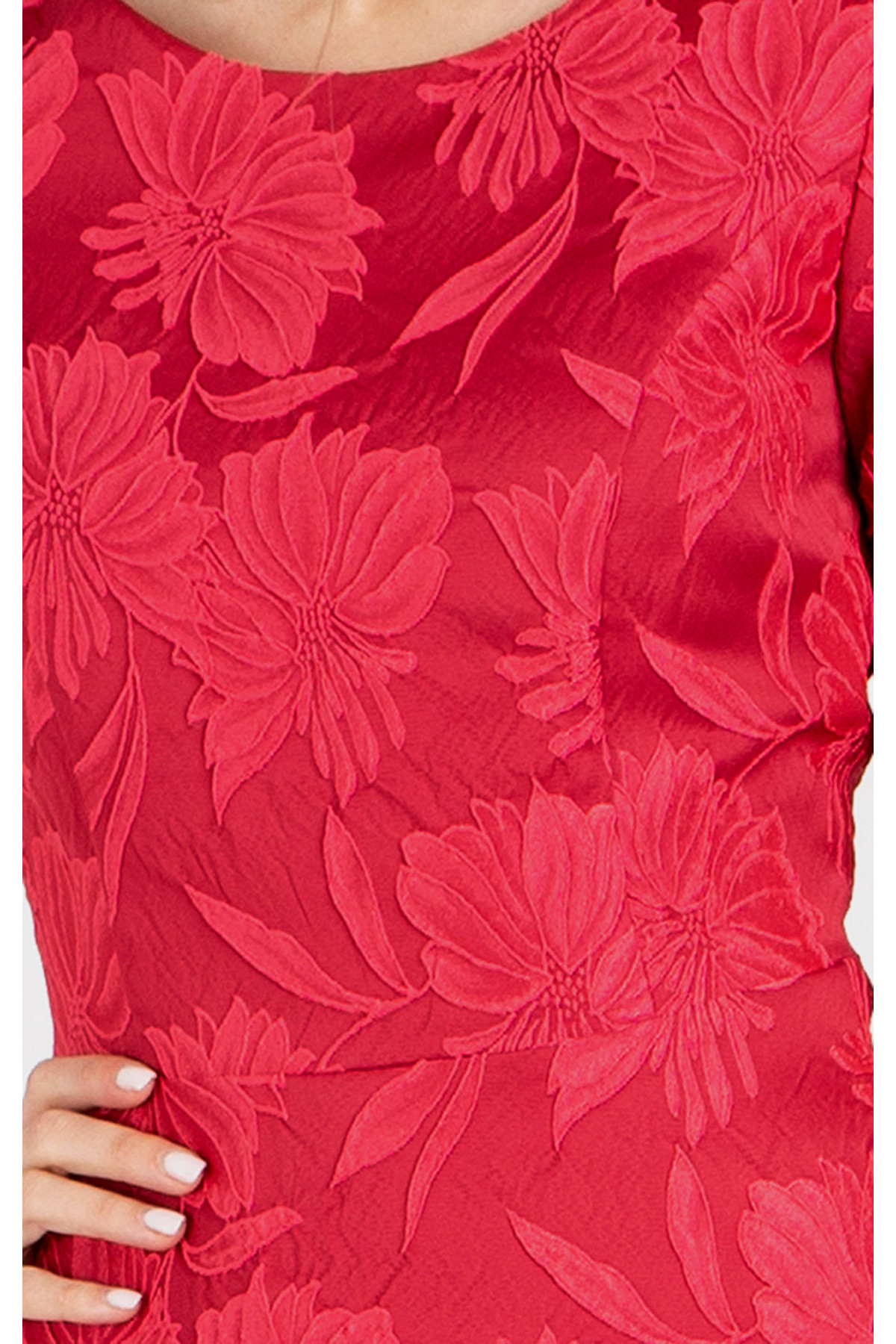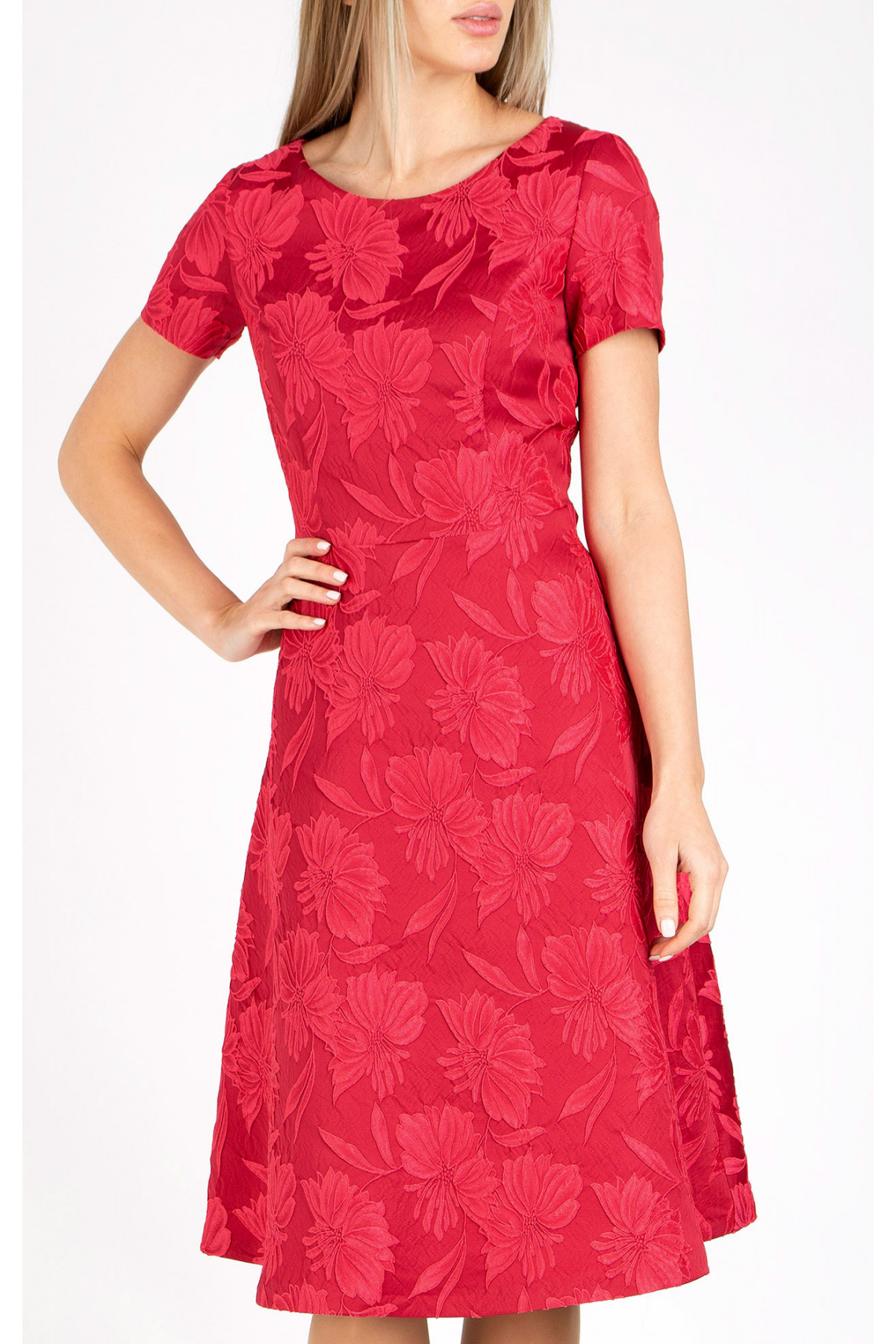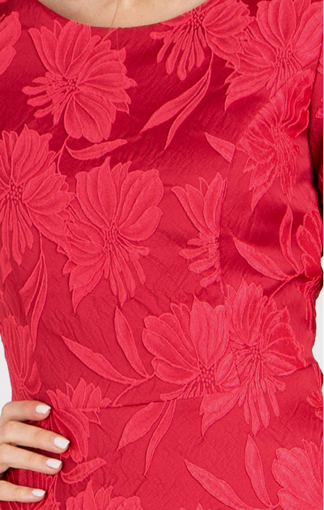 Rochie evazată elegantă din jacquard satinat de culoare Raspberry Wine cu motive florale frumoase. O rochie extrem de stilată, confecționată din jacquard de lux cu luciu satinat și motive florale bogat înflorite. Modelul rochie are partea de sus ajustată și o evazare de la talie în jos, mânecă scurtă și decolteu tip barcă, concepută în lungime midi, închidere cu fermoar ascuns pe spate. Cu această rochie minunată vă veți simți încrezătoare și irezistibilă la evenimentele dvs. speciale. Rochia este confecționată în mărimile de la 36 până la 44.