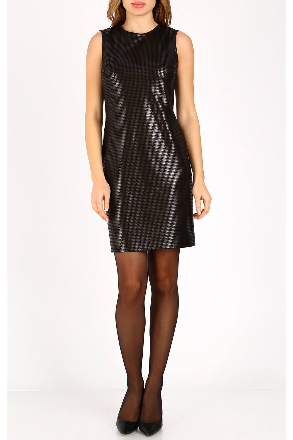 Rochie mini elegantă, neagră, cu efect de piele.