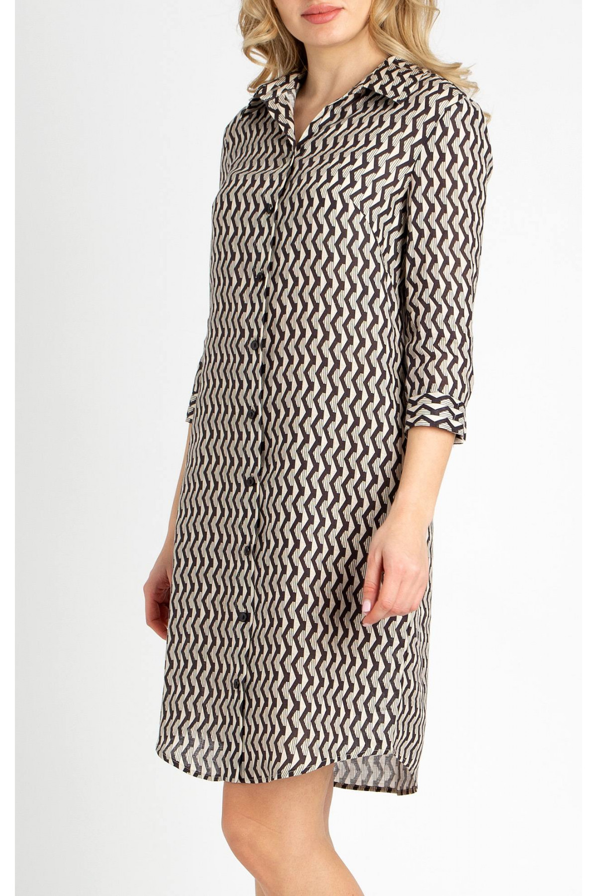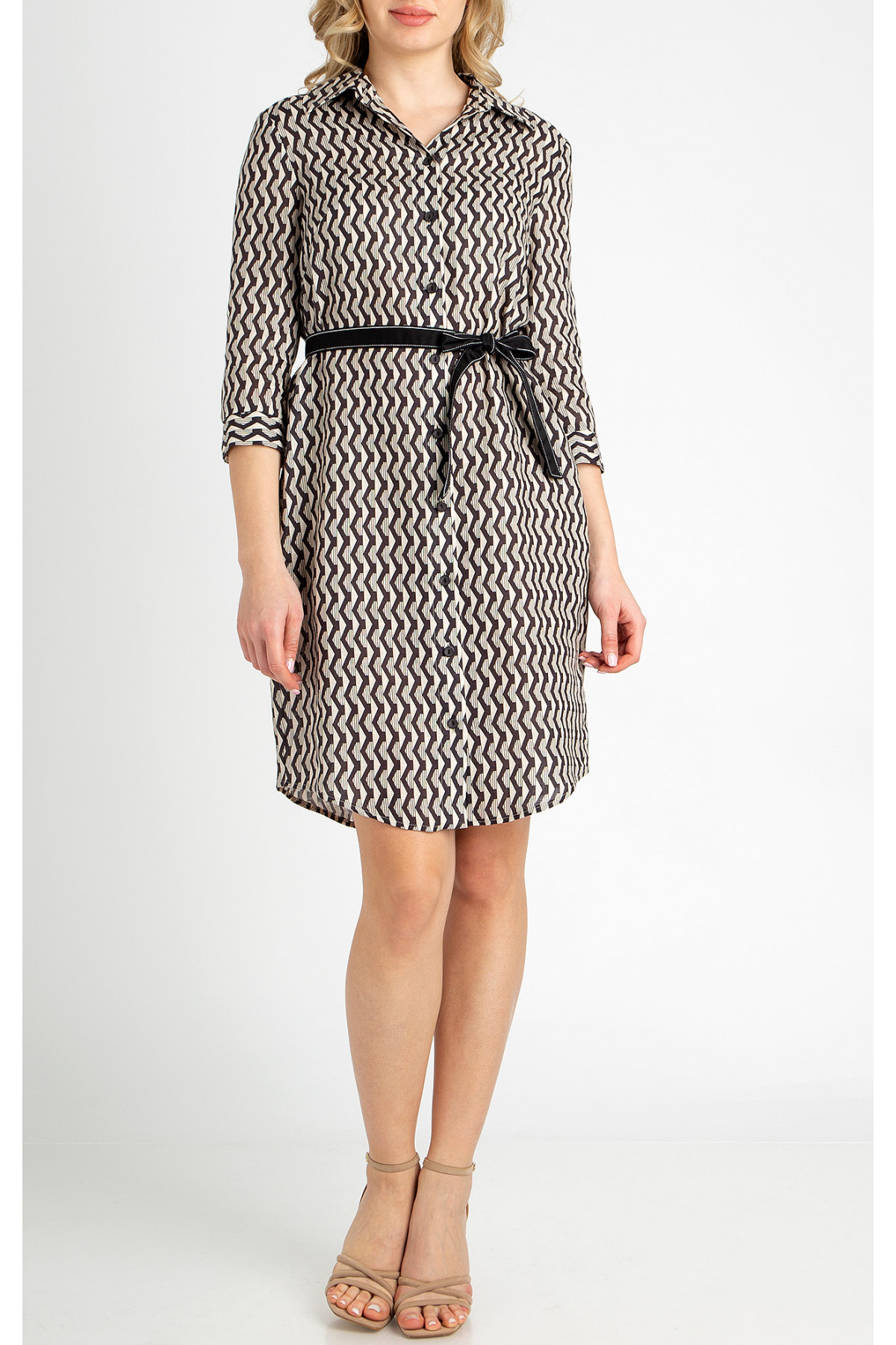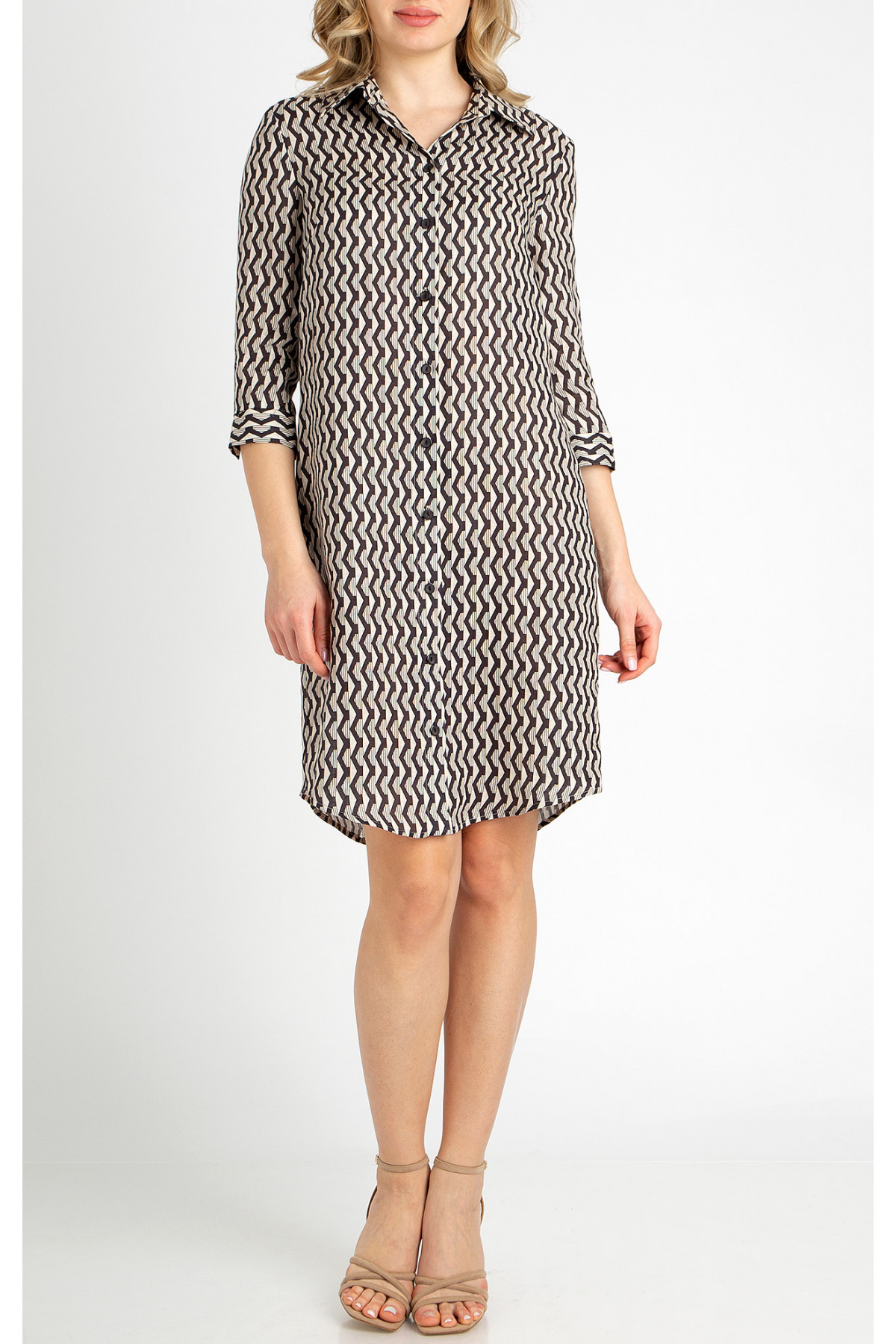 Rochie tip cămașă din 100% in, cu imprimeu grafic elegant