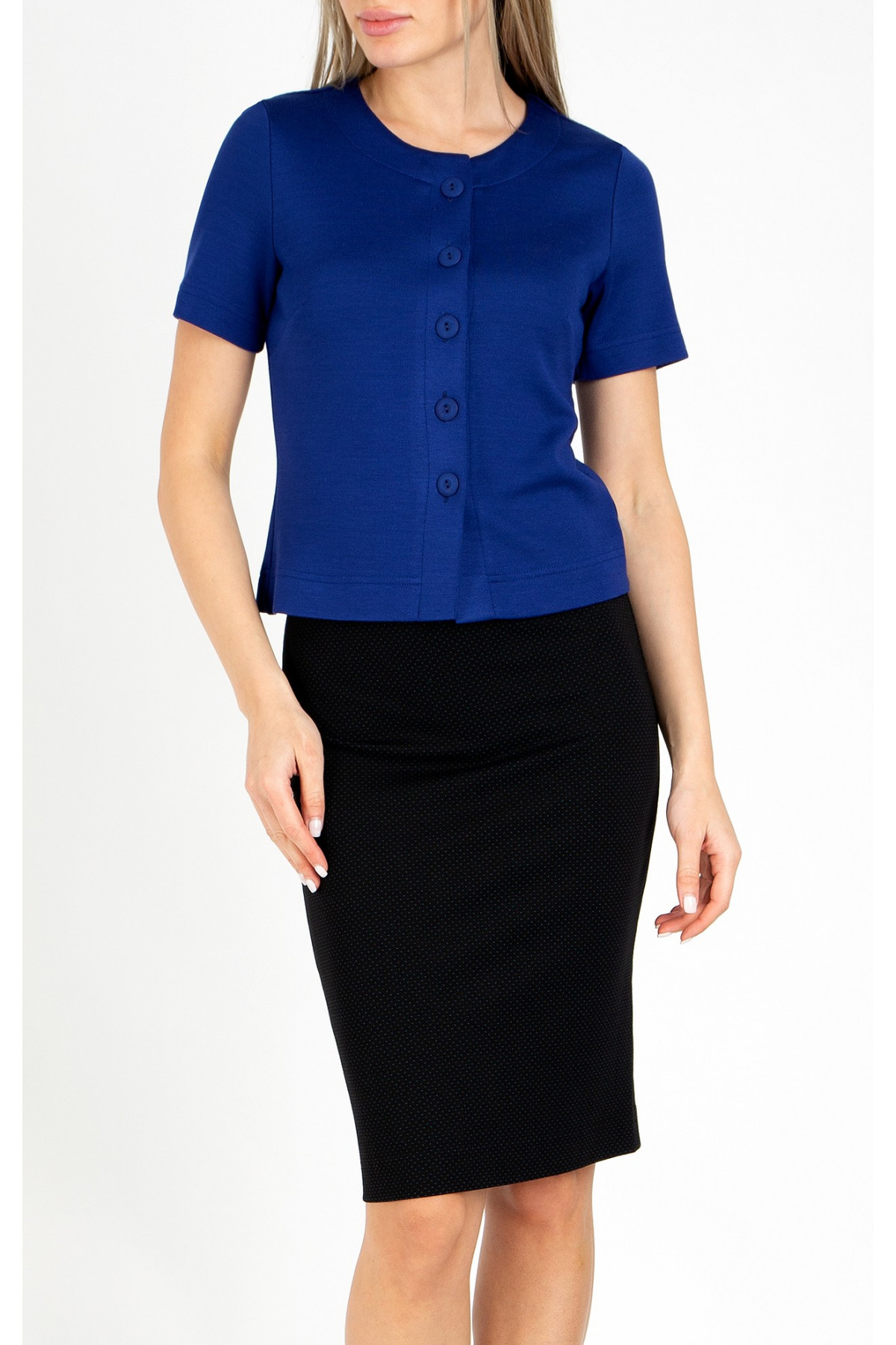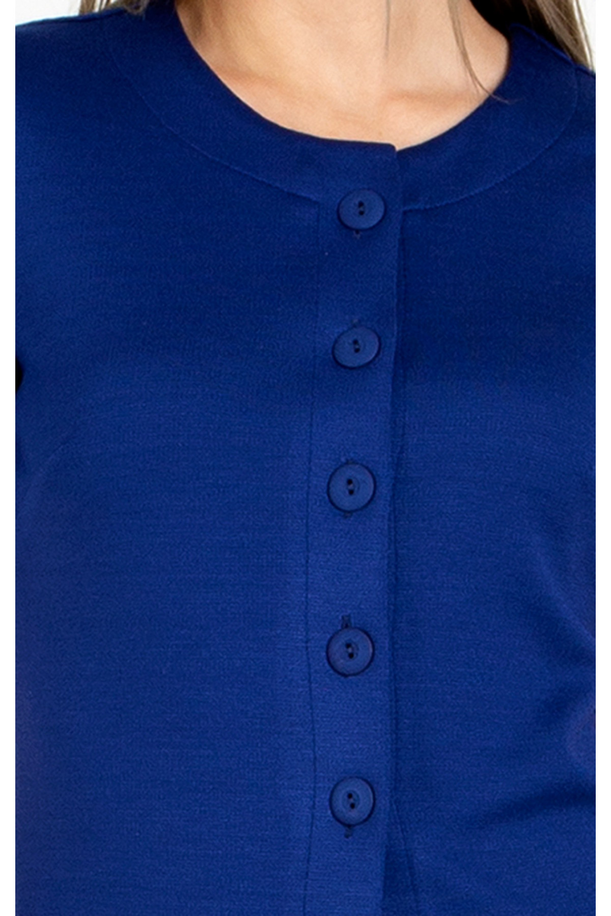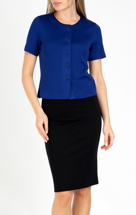Sacou confortabil din jerseu de lux în albastru intens. Modelul are siluetă mulată, închidere cu nasturi, mânecă scurtă, fără căptușeală, pentru o întreținere mai ușoară și mai mult confort. Sacoul este disponibil în mărimile de la 36 până la 44.