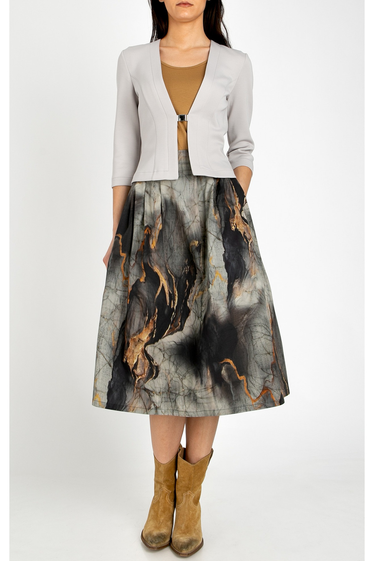 • Modelul din imagine are înălțimea de 173 cm și poartă mărimea 36