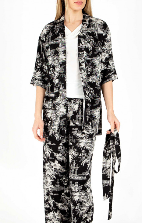Sacou clasic din bumbac cu efecte denim și imprimeu cu flori